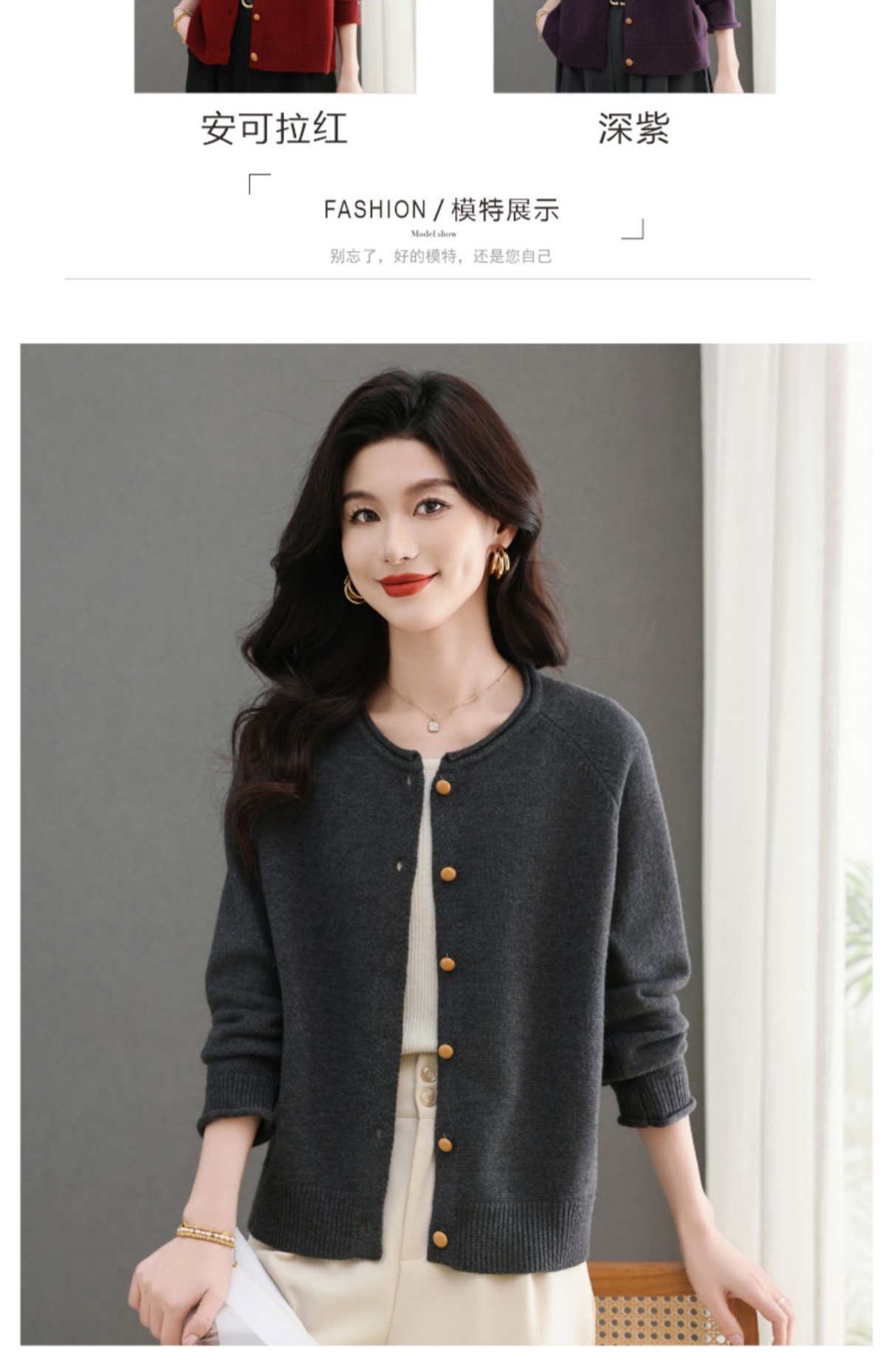 气质简约纯色短款圆领,针织开衫休闲宽松上衣CC-5-6321