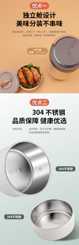 2L大容量满足多样需求。优质不锈钢材质,健康环保。独立舱设计,分区明确,避免食物串味。长效保温,让美味与温暖持久相伴。时尚外观,便携轻巧,无论是上班、出游还是学校用餐,它都是你的最佳选择,开启便捷舒适的用餐新体验。