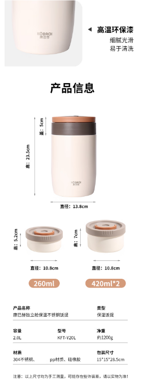 康巴赫独立舱保温不锈钢饭提