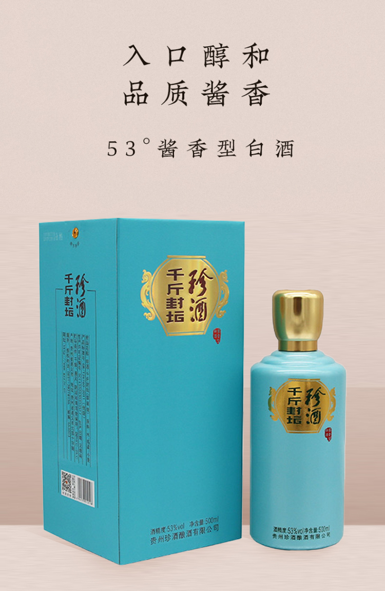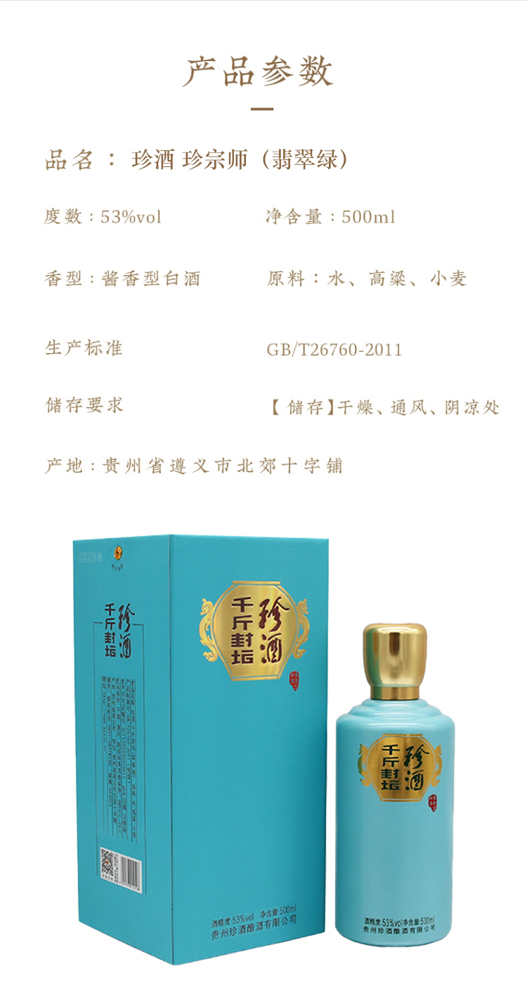 【推荐】珍酒 千斤封坛 珍宗师(翡翠绿) 酱香型 53度 500ml*6 【整箱装】
