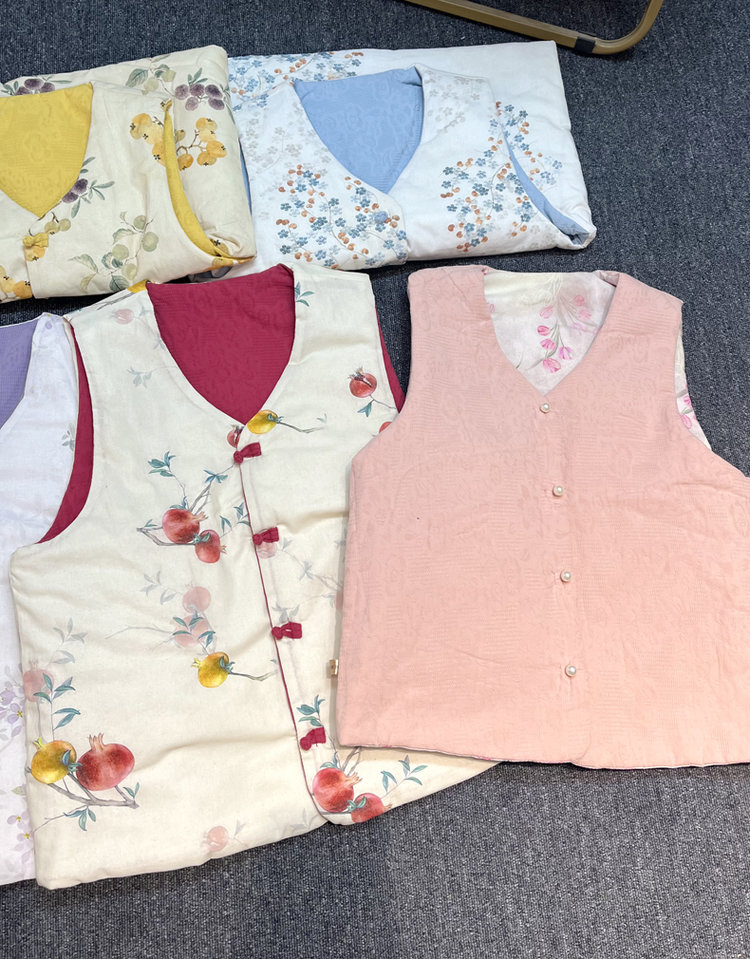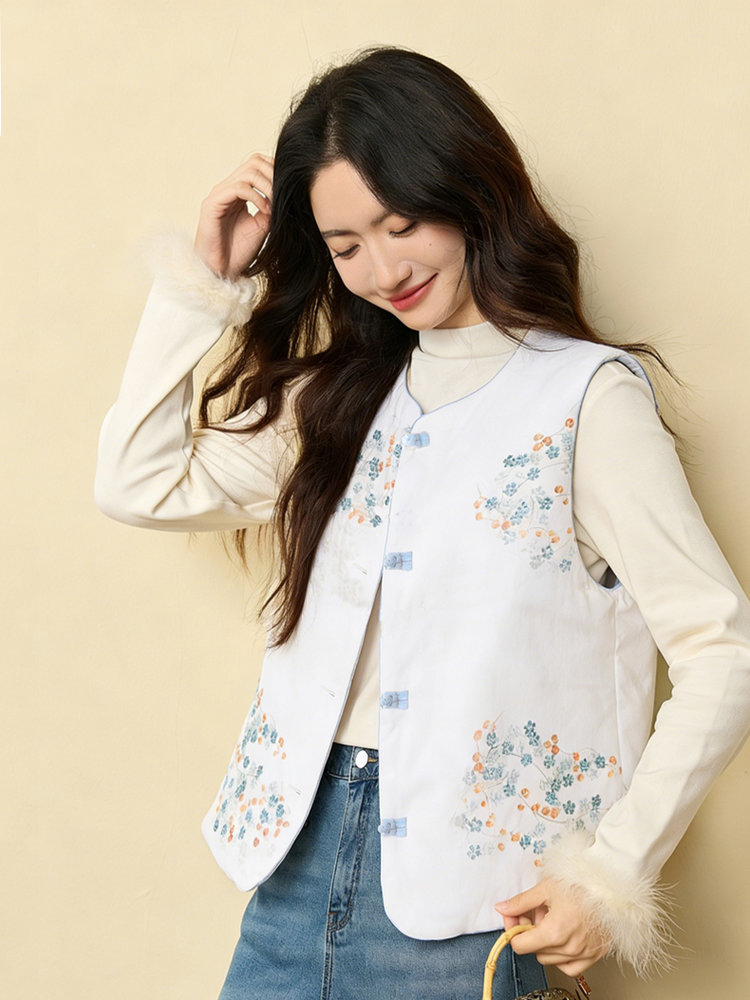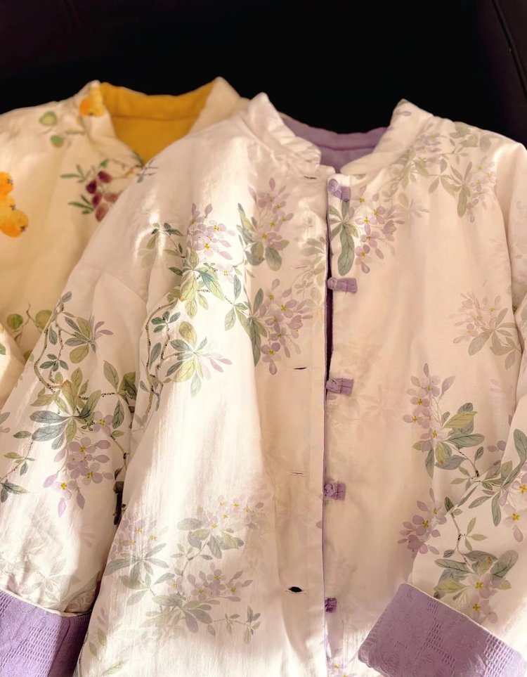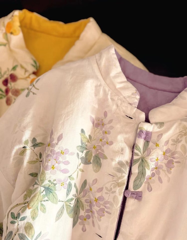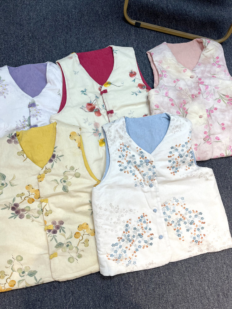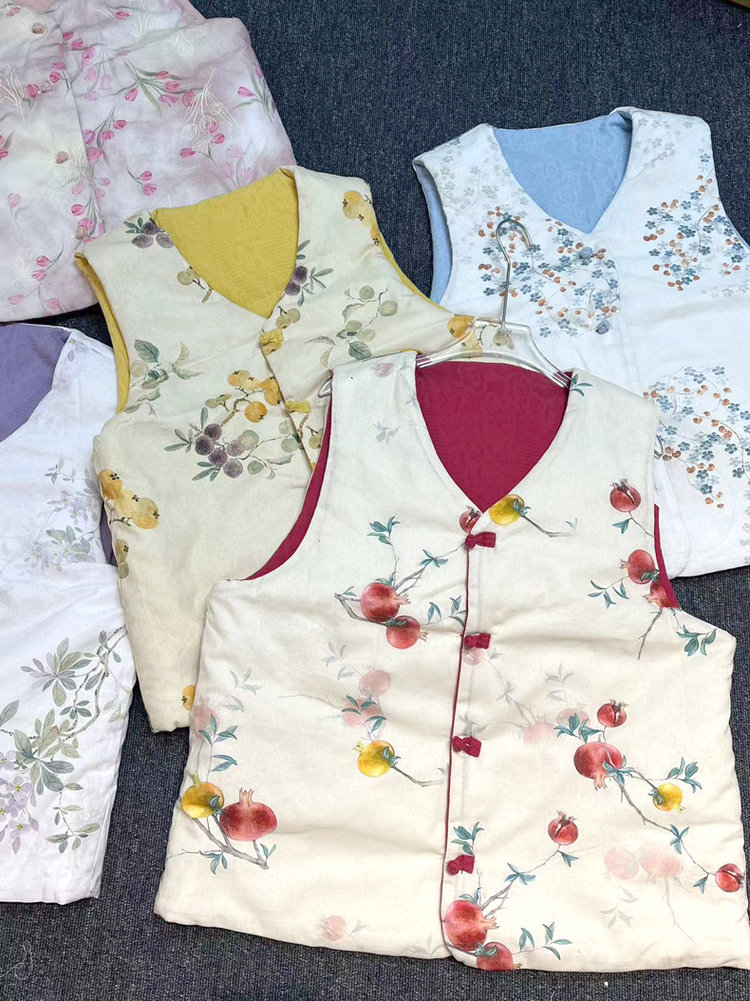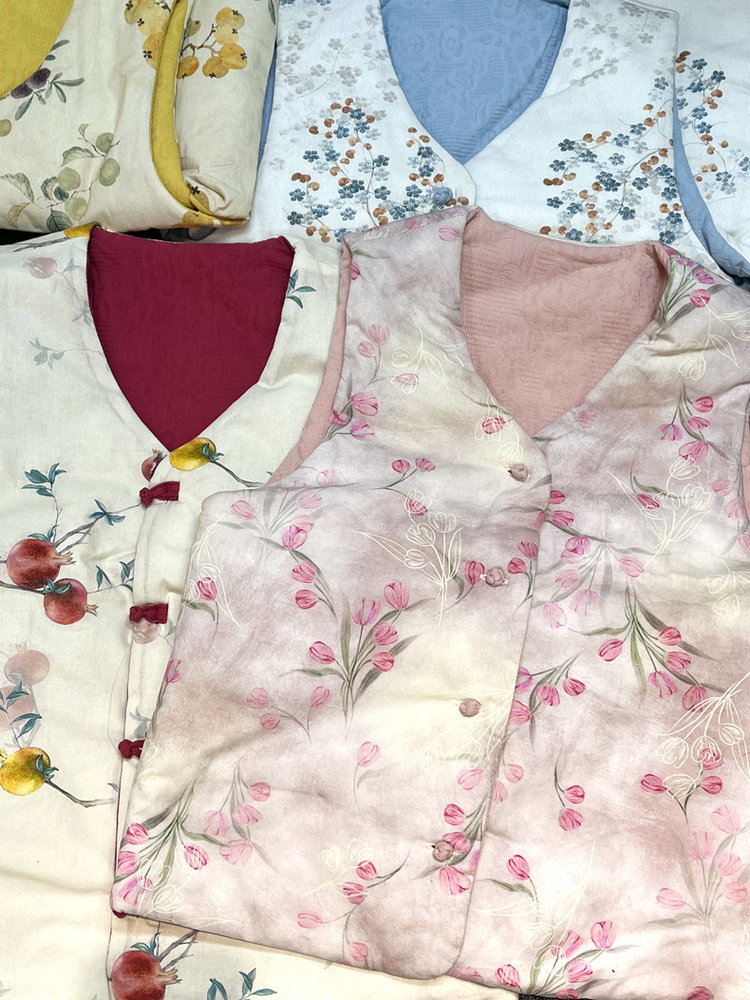 【新年穿新衣!一件顶两件!】佐姿莎 新中式国风水墨花卉纯棉棉服/马甲 双面穿+五色国风;柔软舒适,锁温透气,蓬松软乎不压身;盘扣+珍珠扣双扣设计;定染中式水墨印花 温柔雅致