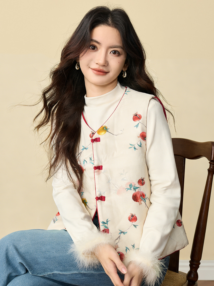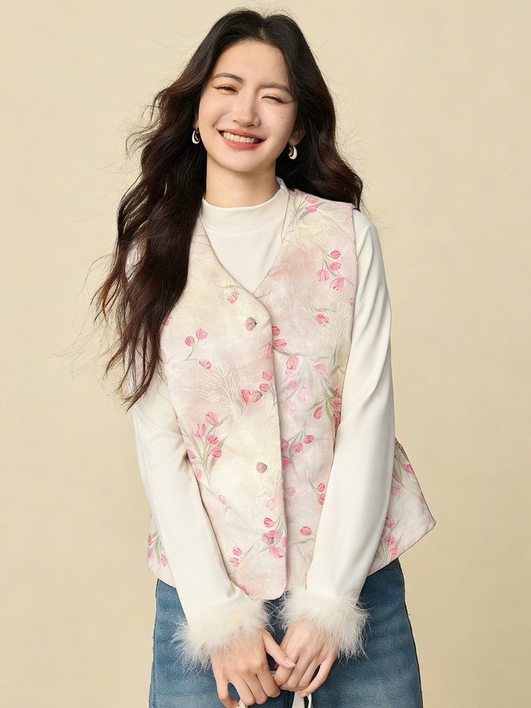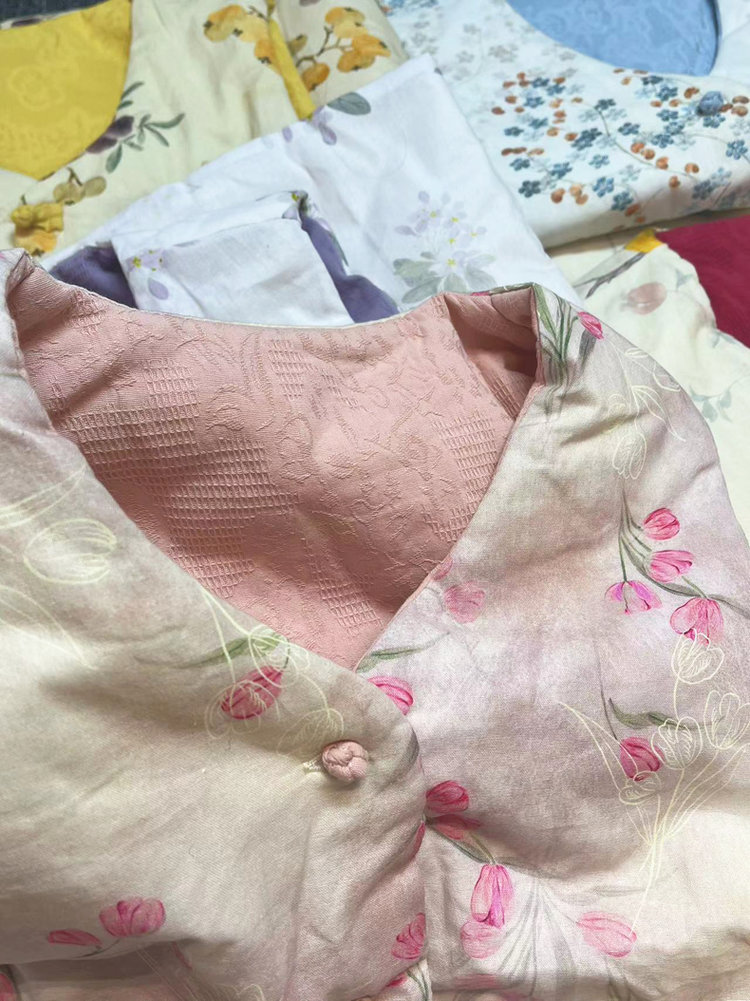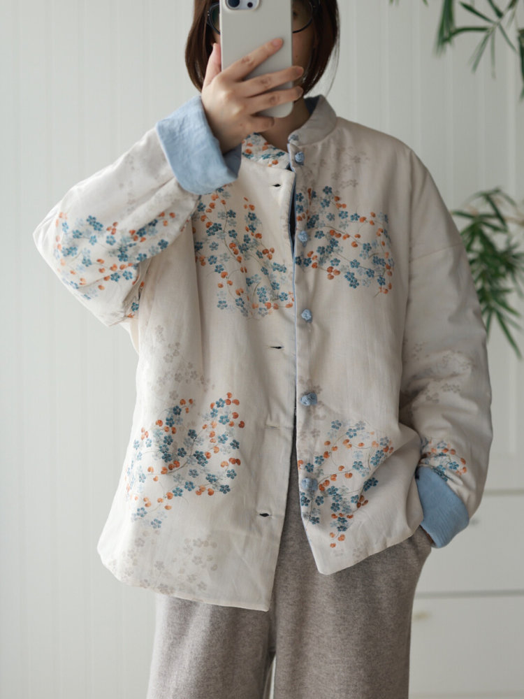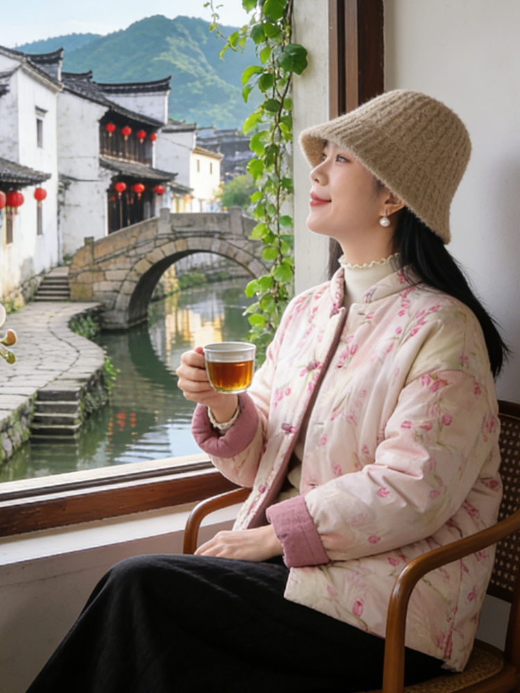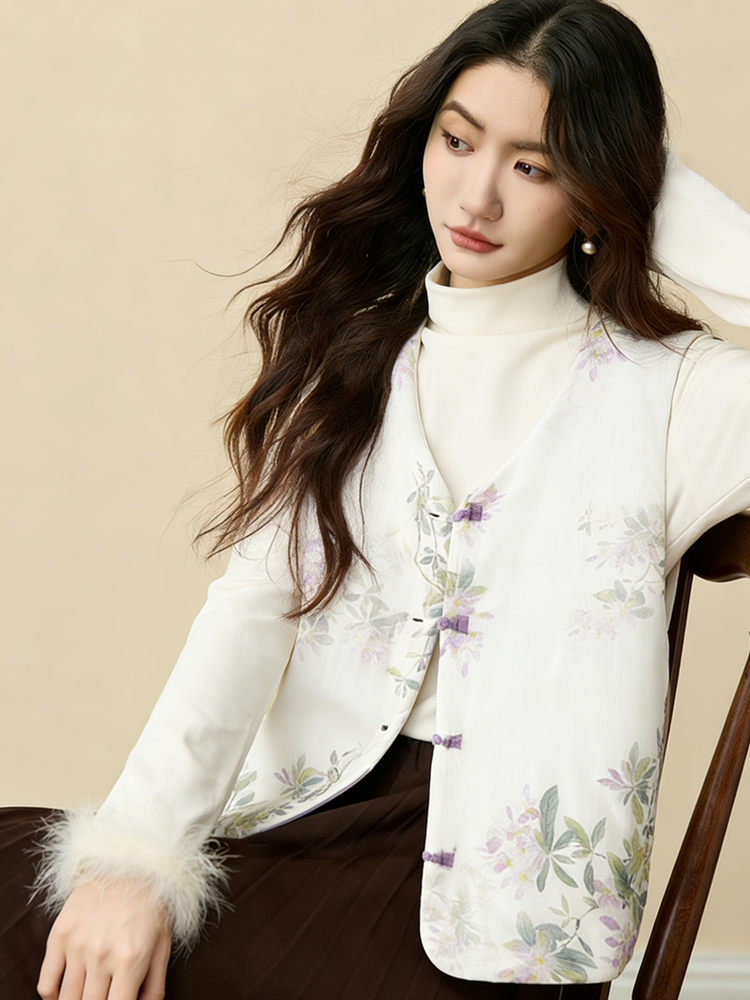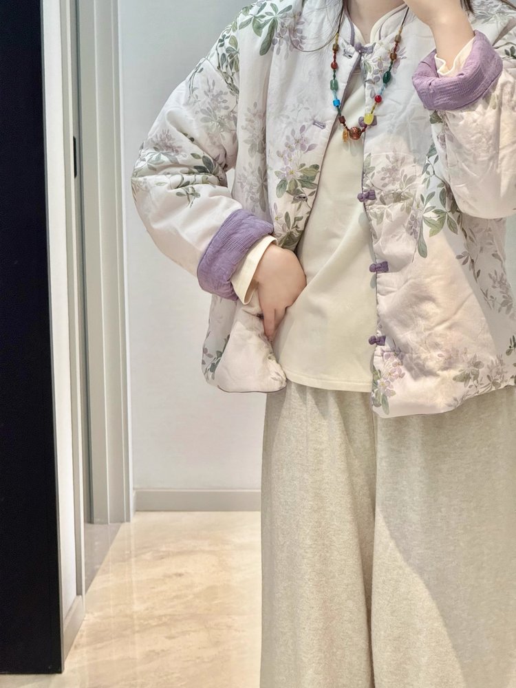 【新年穿新衣!一件顶两件!】佐姿莎 新中式国风水墨花卉纯棉棉服/马甲 双面穿+五色国风;柔软舒适,锁温透气,蓬松软乎不压身;盘扣+珍珠扣双扣设计;定染中式水墨印花 温柔雅致