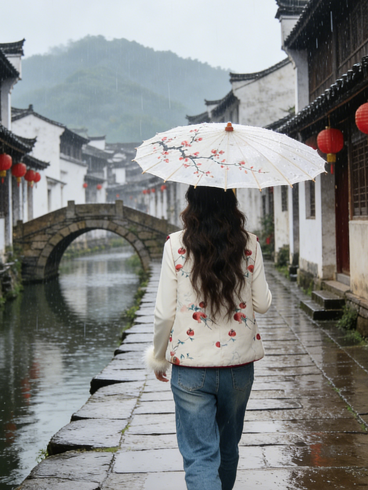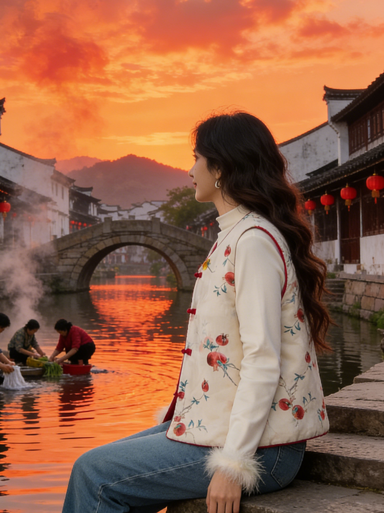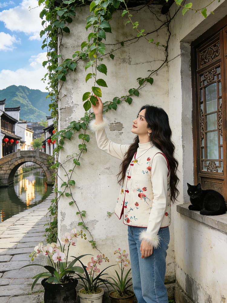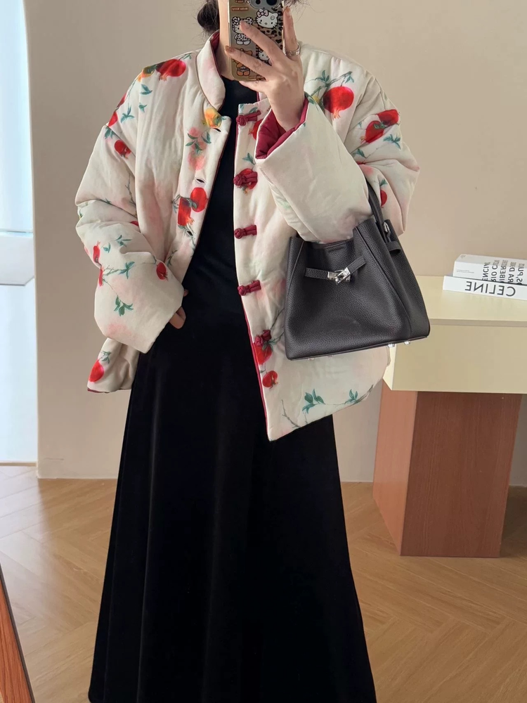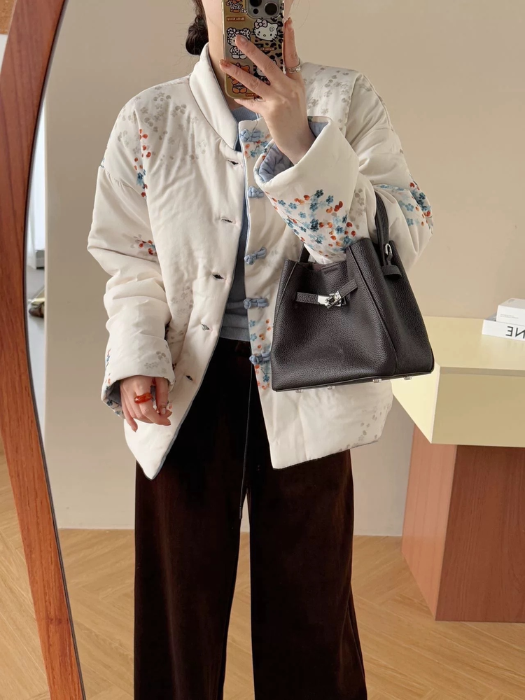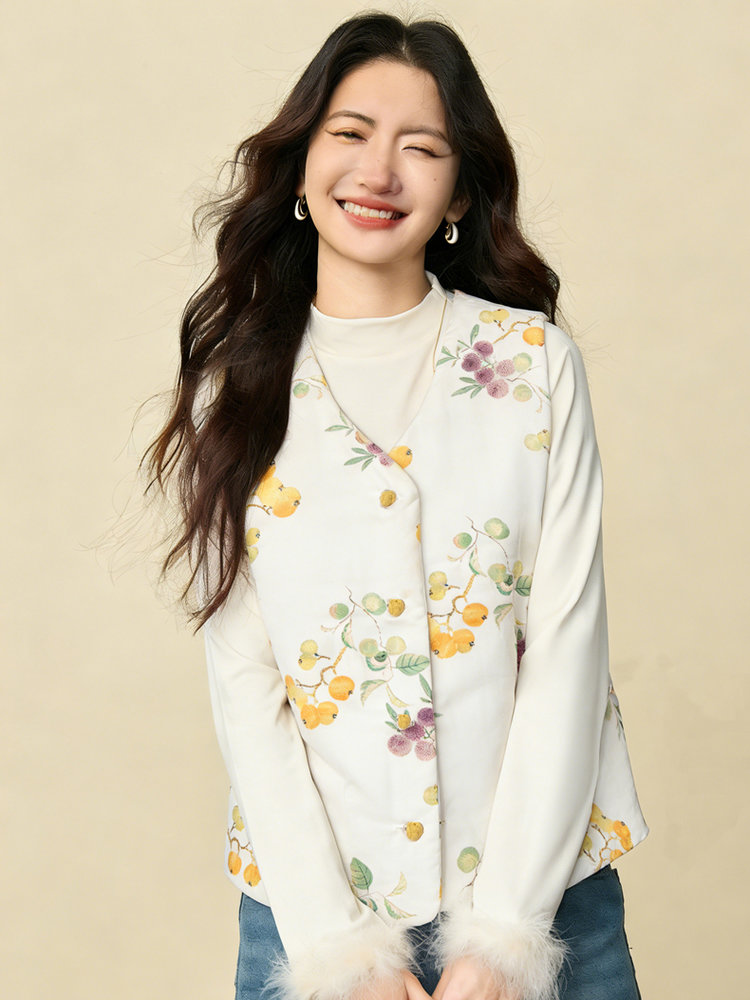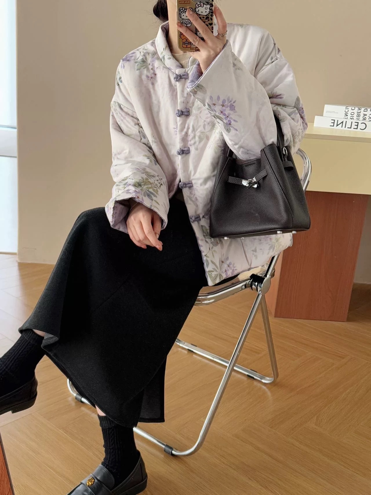 【新年穿新衣!一件顶两件!】佐姿莎 新中式国风水墨花卉纯棉棉服/马甲 双面穿+五色国风;柔软舒适,锁温透气,蓬松软乎不压身;盘扣+珍珠扣双扣设计;定染中式水墨印花 温柔雅致