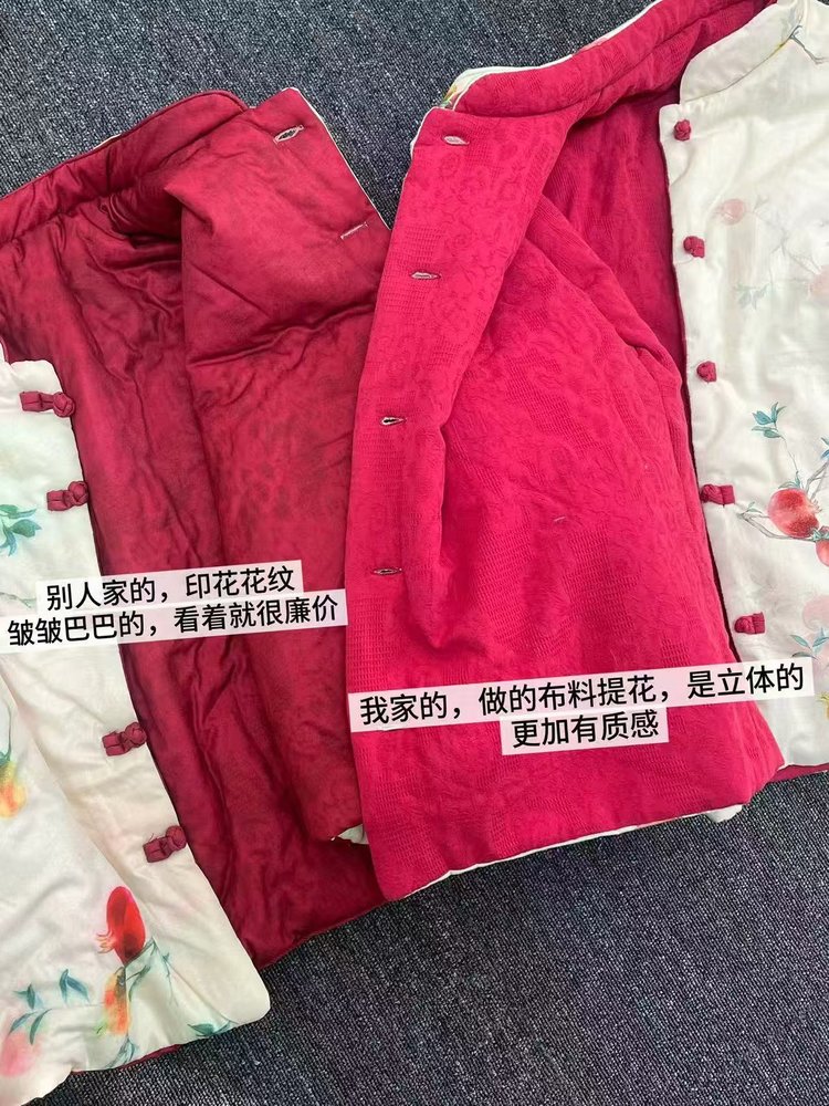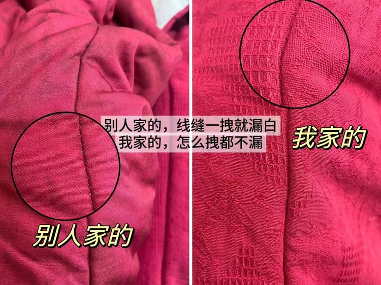 外面料:100%棉,填充物:100%羽绒棉,内里:100%棉