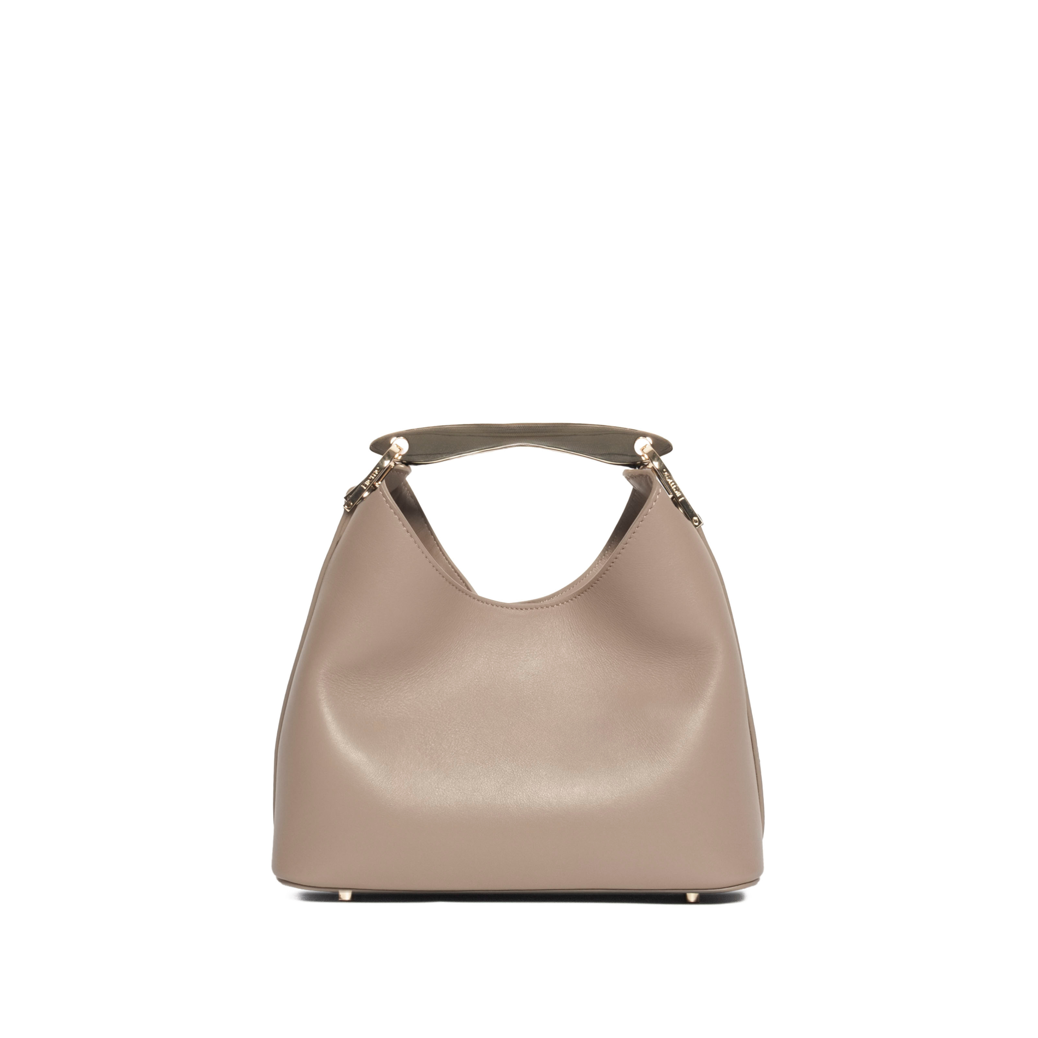 Boomerang 小号手袋体积小巧,工艺奢华,采用精致的金属顶部手柄, Elleme 的标志性设计系列。