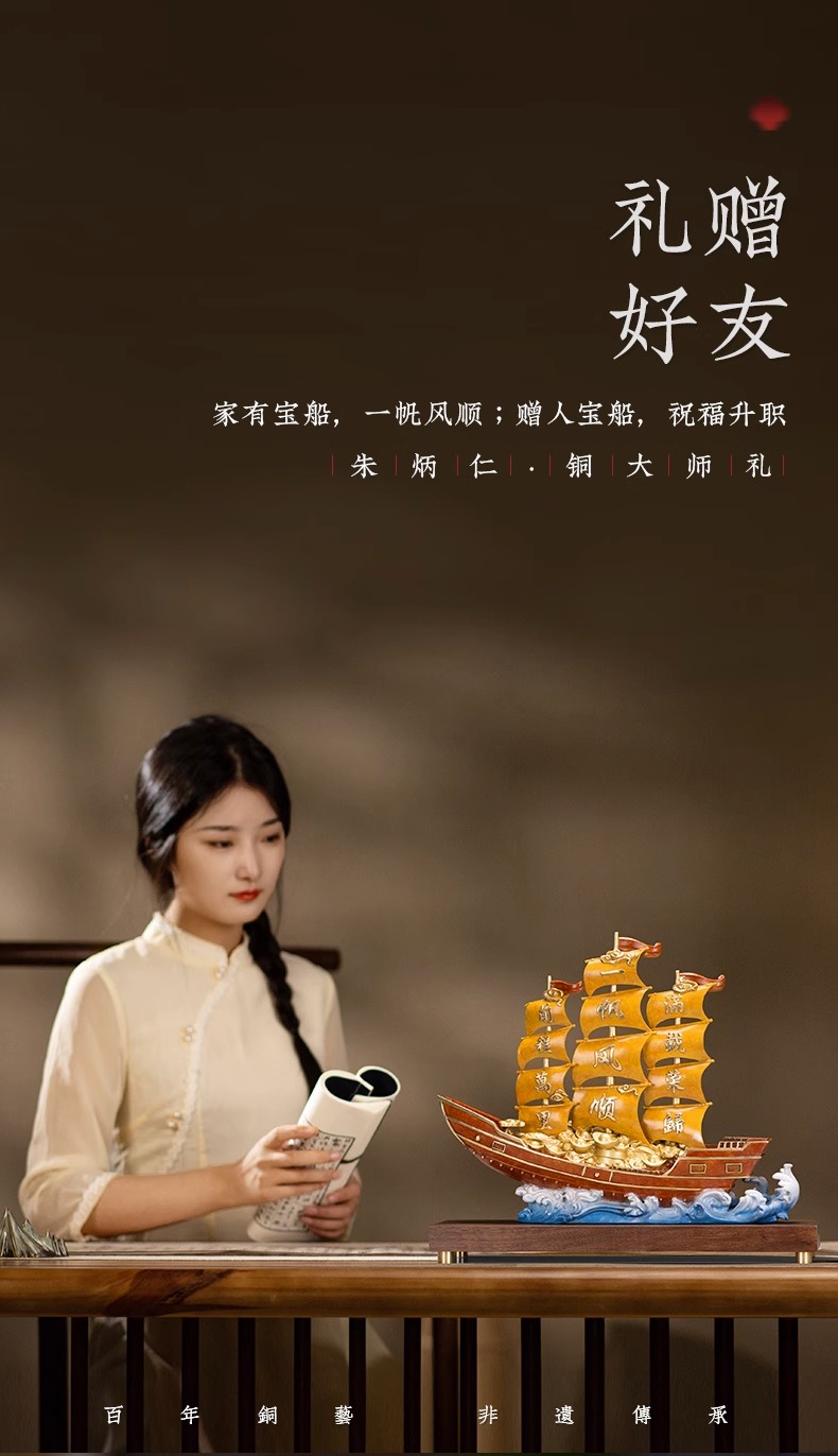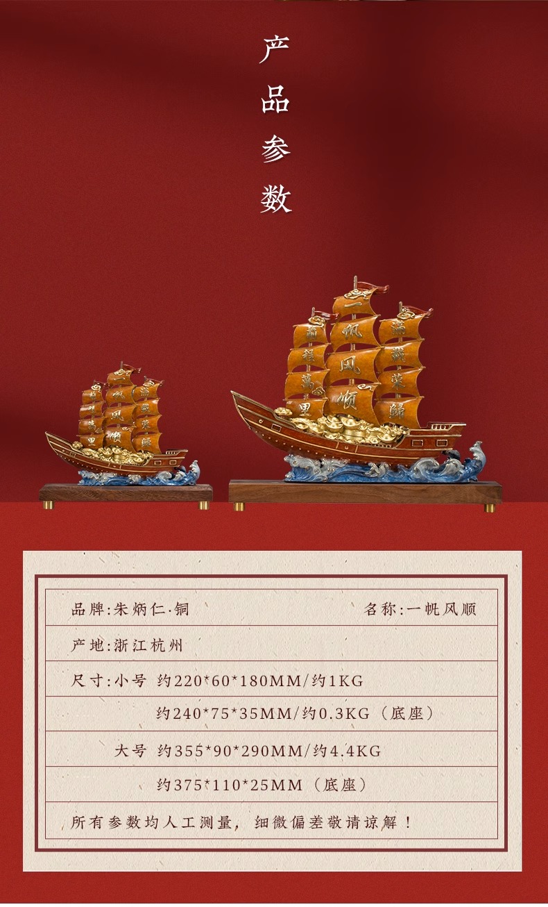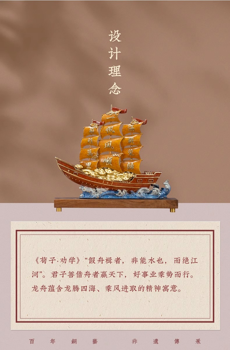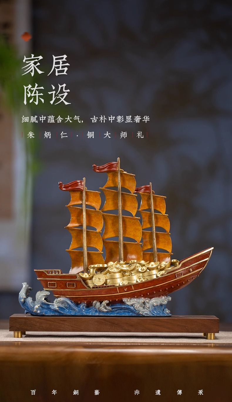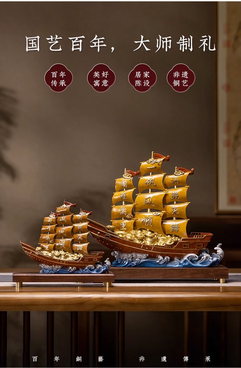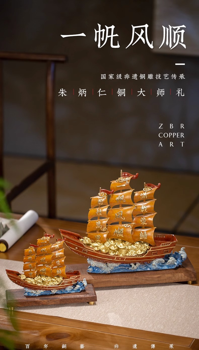 朱炳仁铜 一帆风顺帆船摆件铜雕办公室客厅桌面家居饰品开业礼