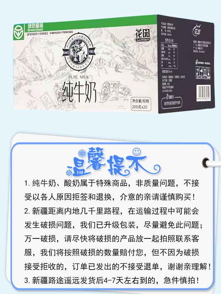 新疆花园牛奶利乐枕200g*20袋纯牛奶