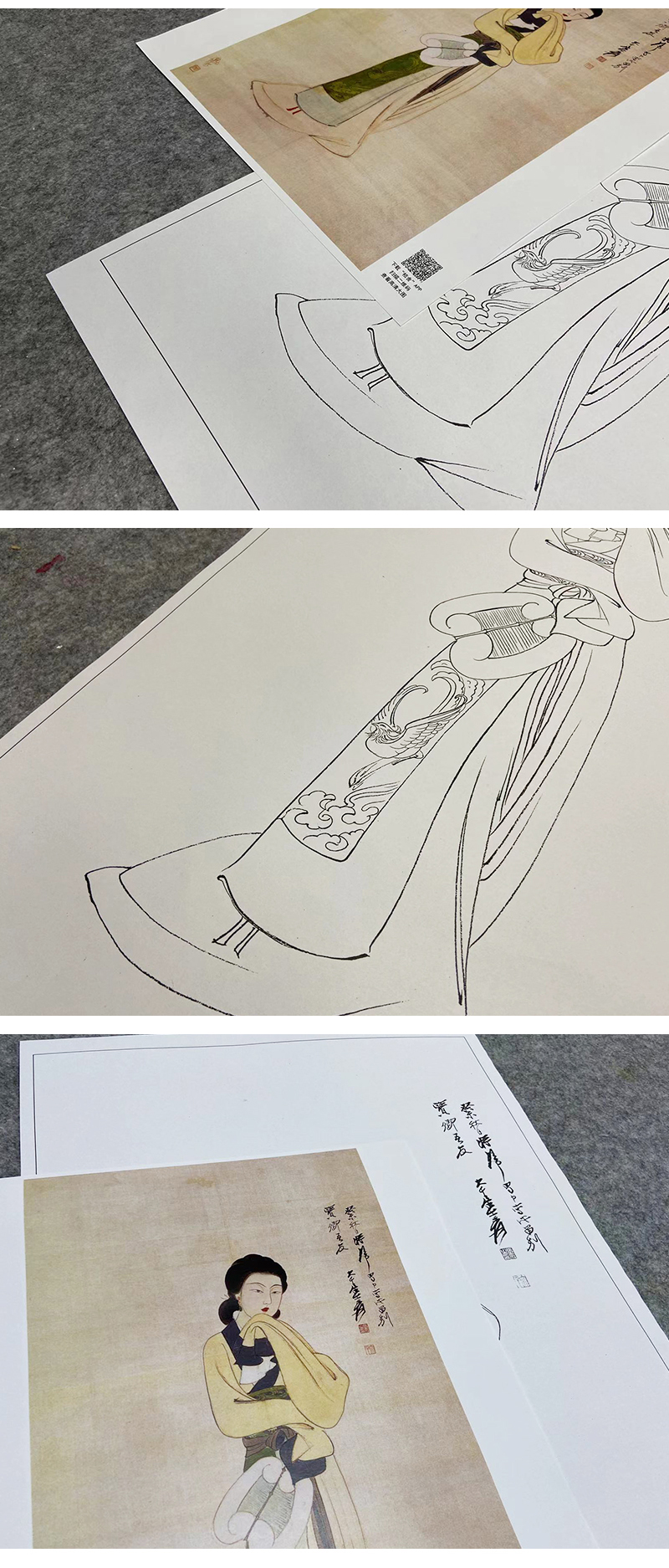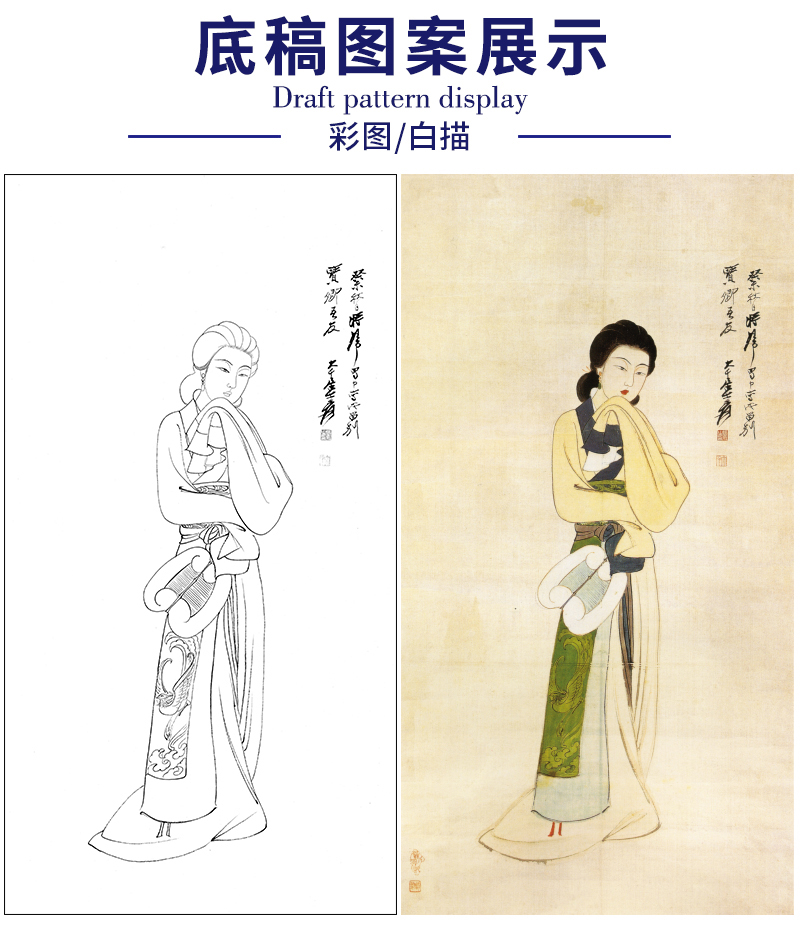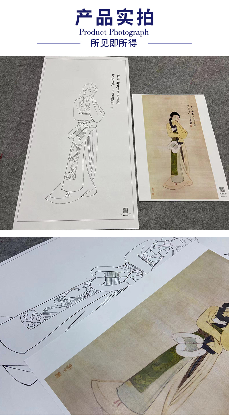 张大千竖幅工笔传统仕女人物白描底稿-执扇仕女-QD60