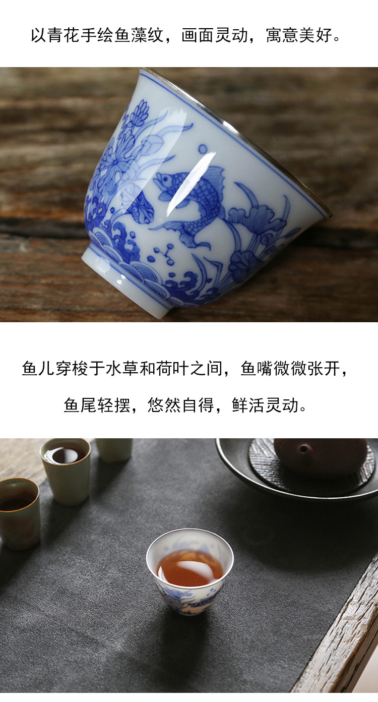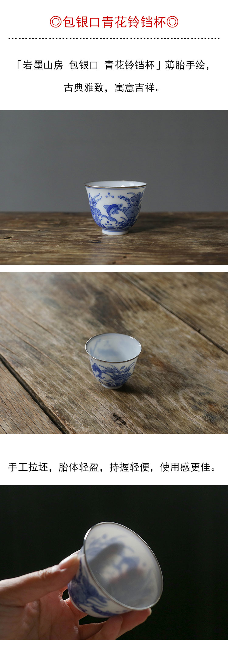 茶香记 景德镇岩墨山房包银口青花铃铛杯60ml手绘陶瓷薄胎茶杯主人杯