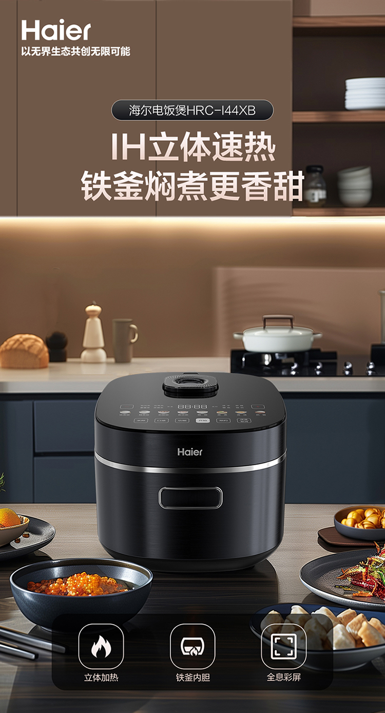 海尔电饭煲 天幕彩色大屏,IH铁釜方煲