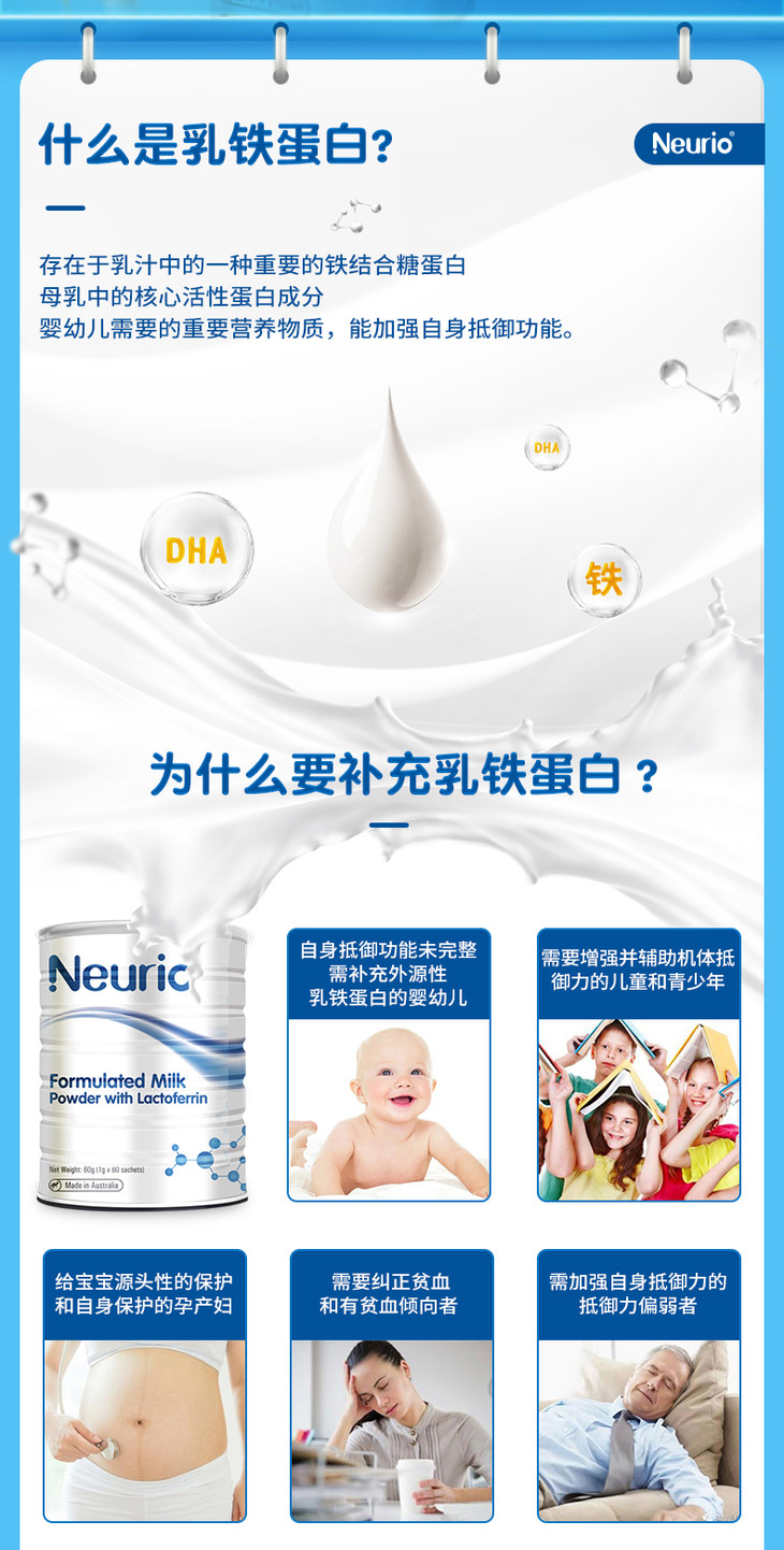 Neurio纽瑞优/澳洲乳铁蛋白白金版调制乳粉1g*60袋