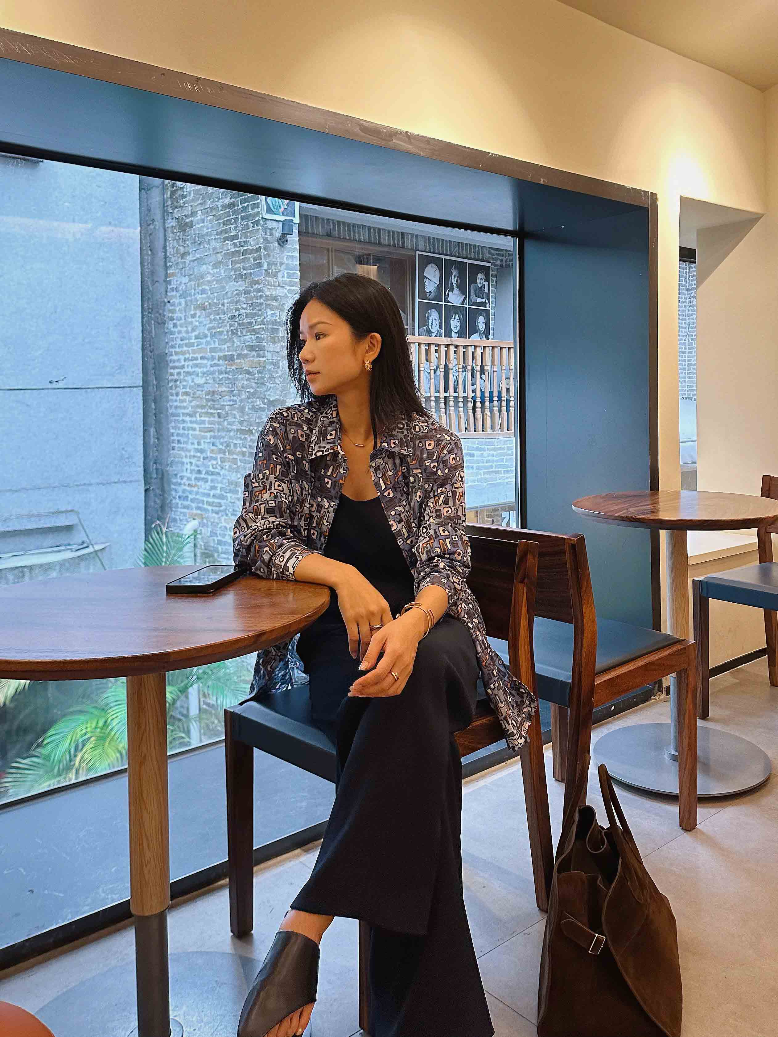 衬衫做了翻领设计,上身修饰脸型,很好的突出脖颈曲线,看上去落落大方