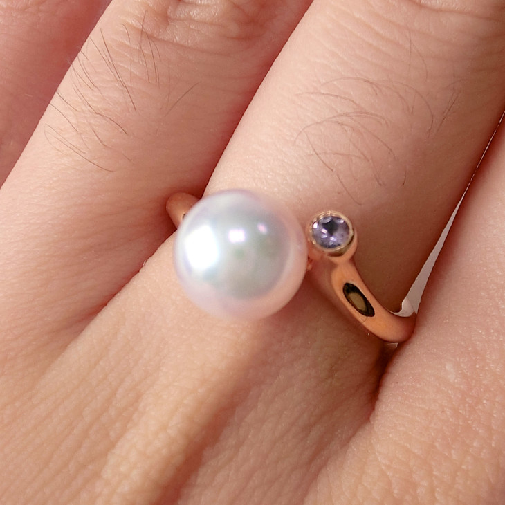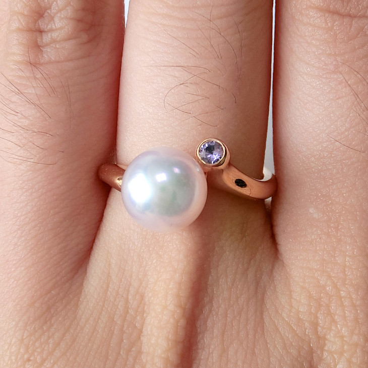 8mmAkoya珍珠紫色蓝宝石戒指