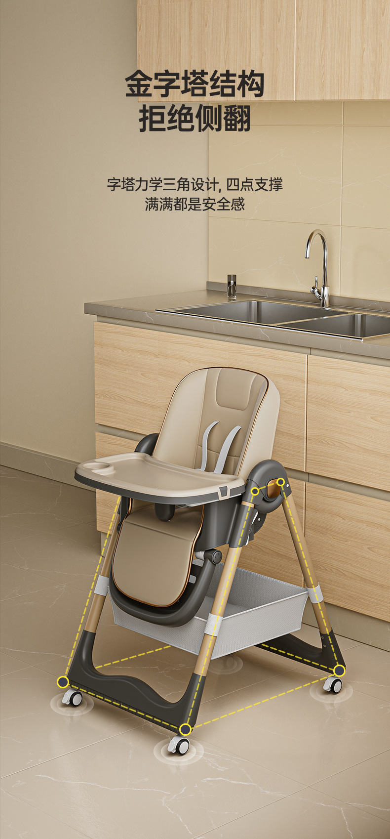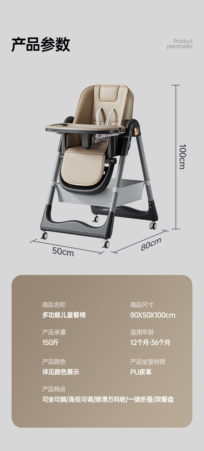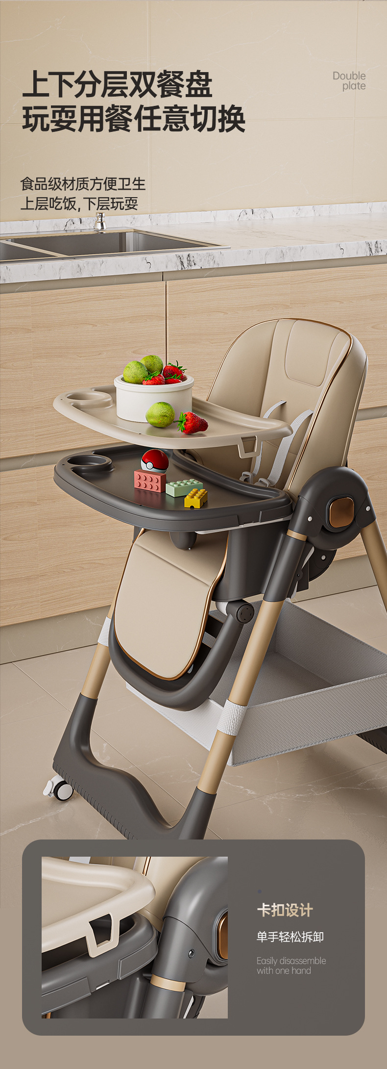 【宝宝专属餐椅,吃饭不是小事儿~】宝宝餐椅儿童多功能 可折叠可调节可坐可躺 家用宝宝座椅 双层餐盘-QQ