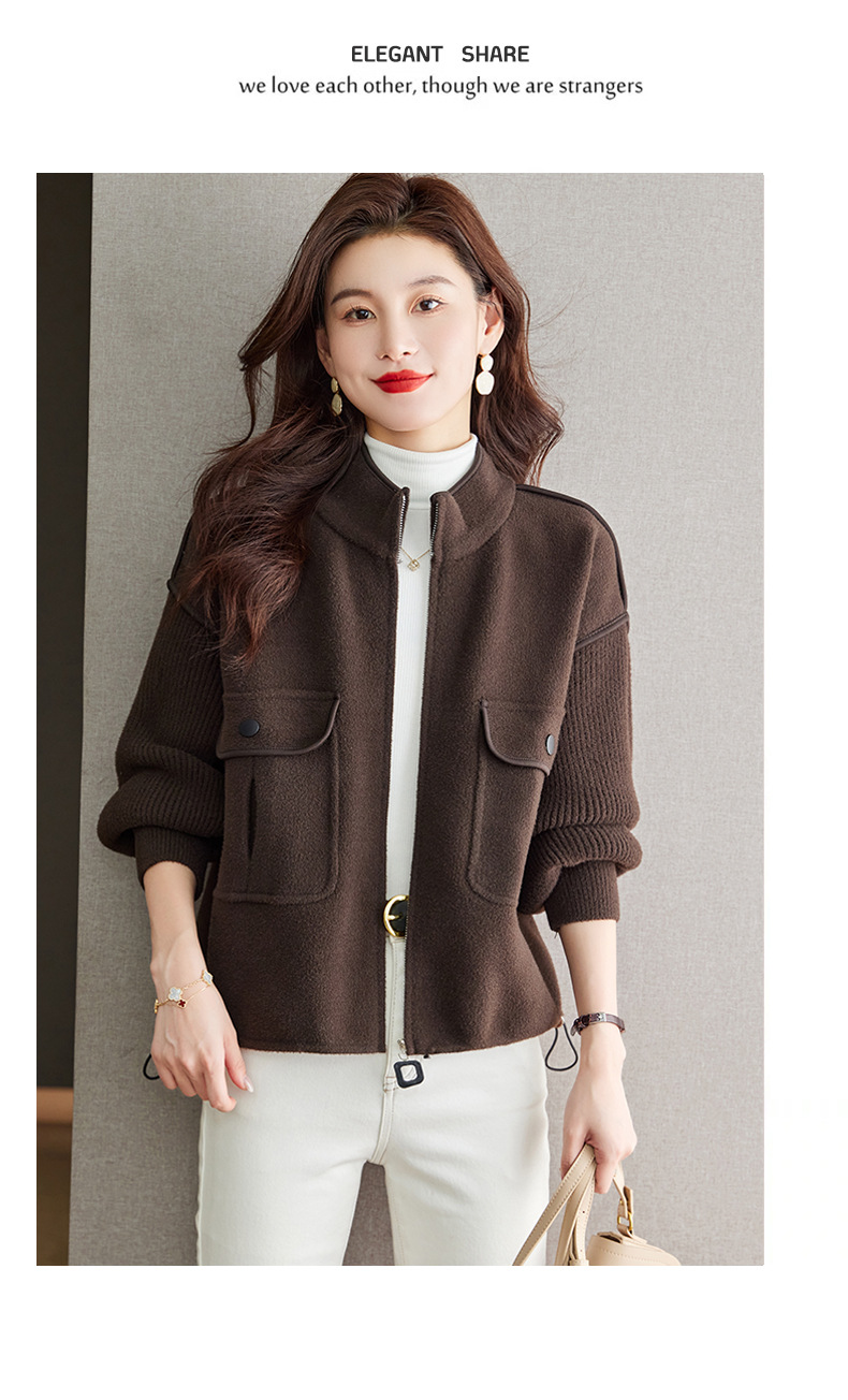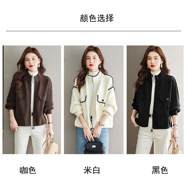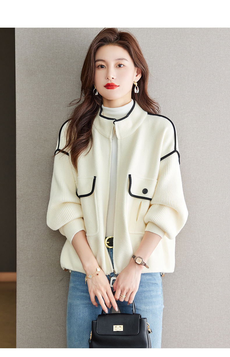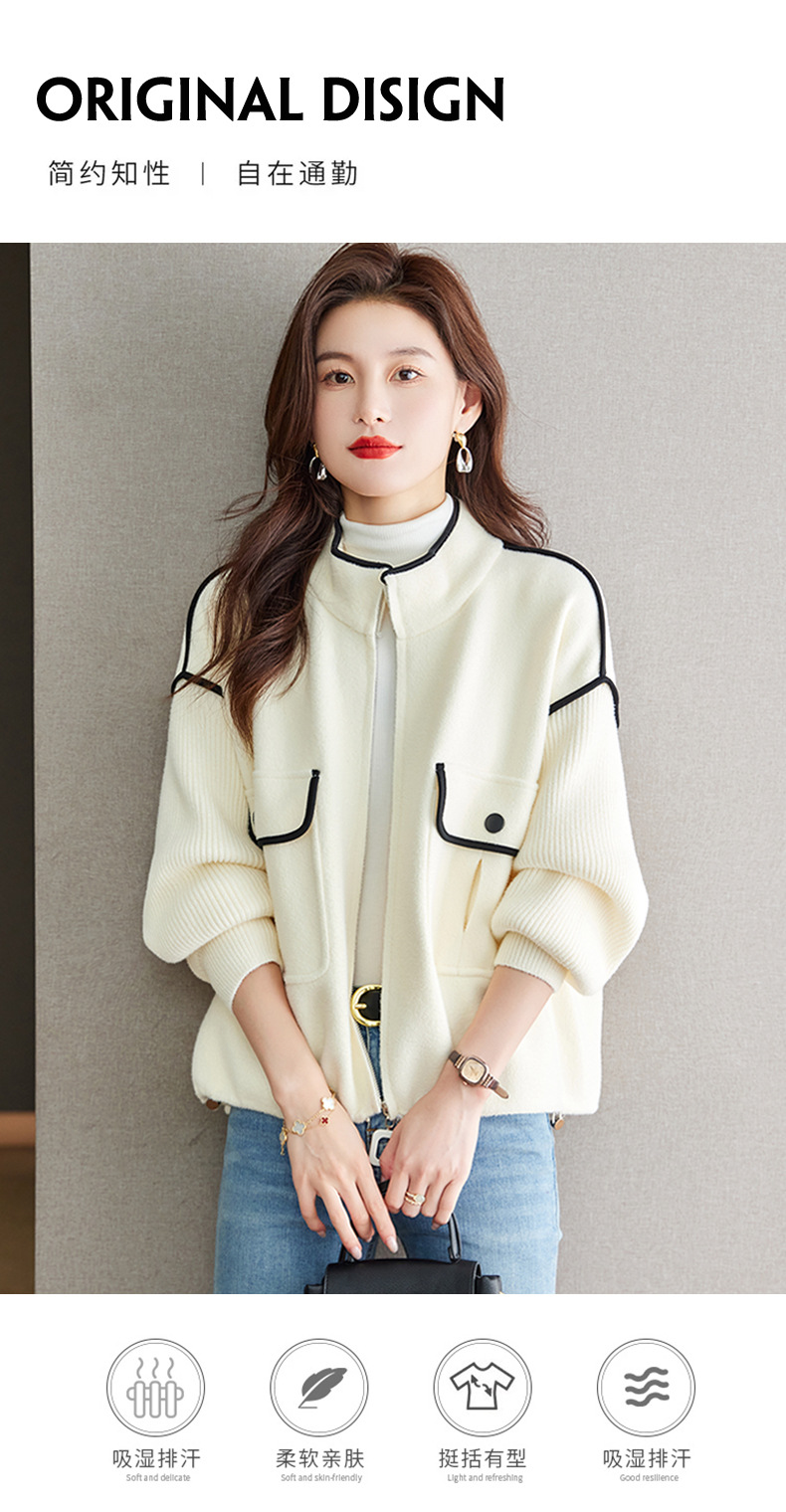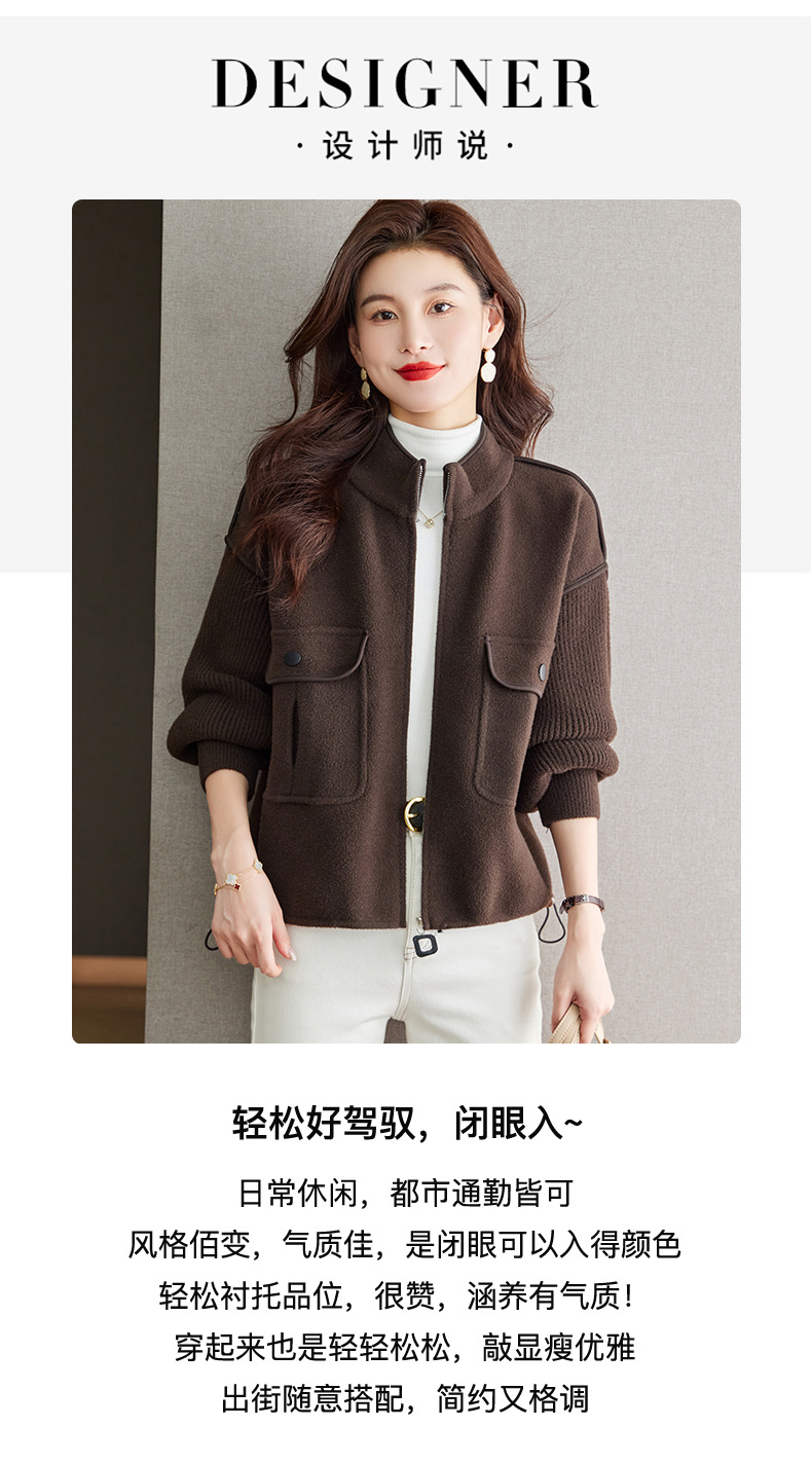 小香风毛呢外套,立领气质针织开衫CC-ML-B683