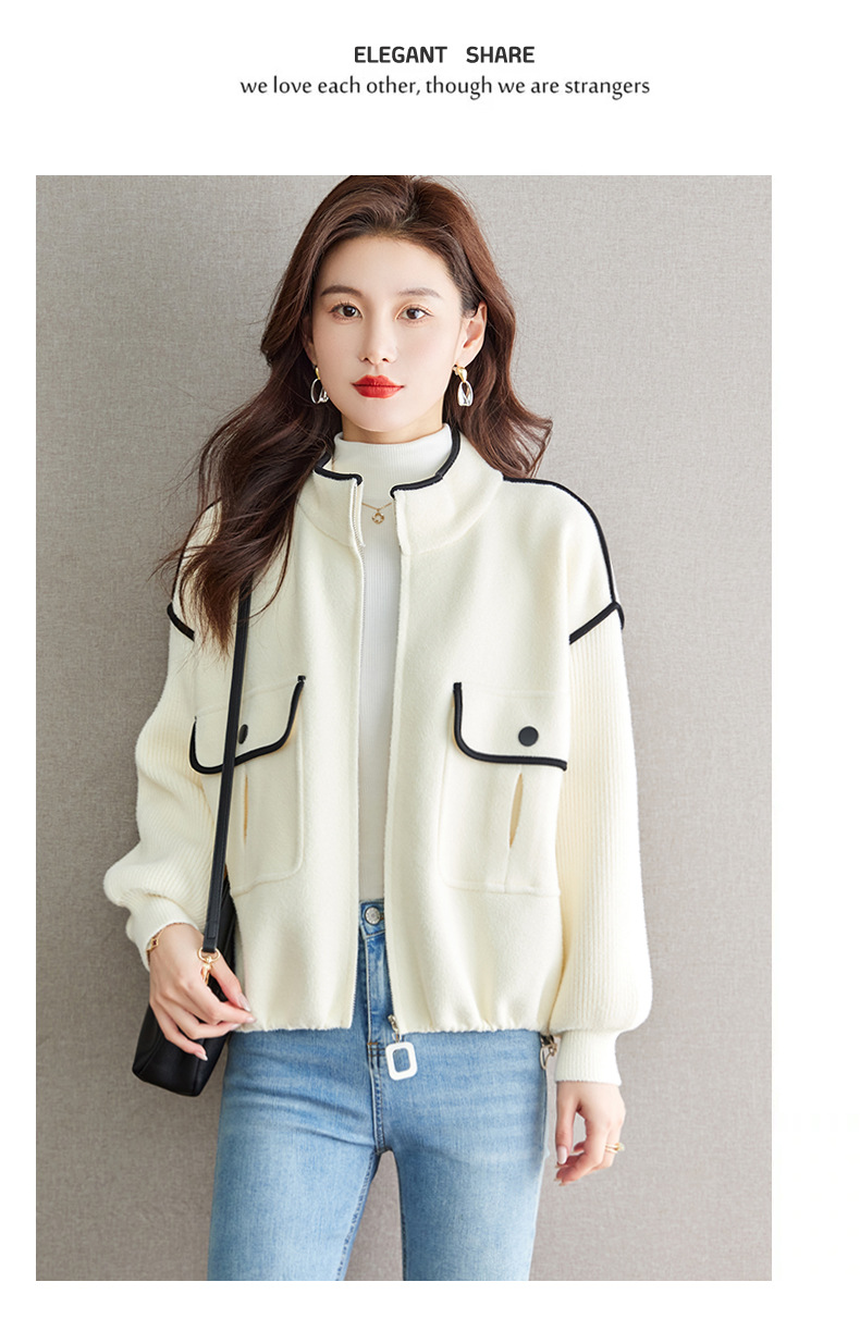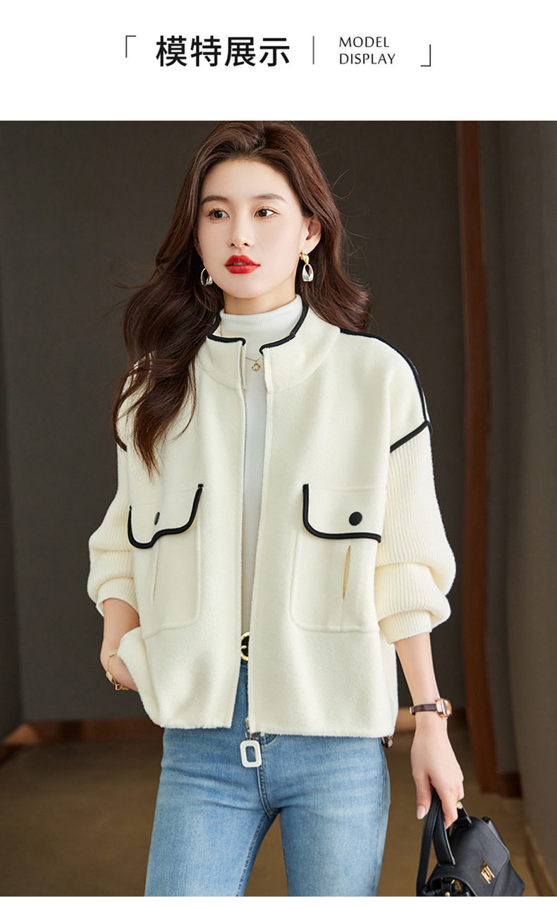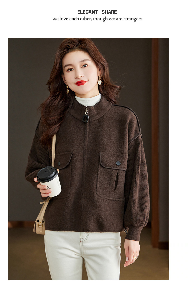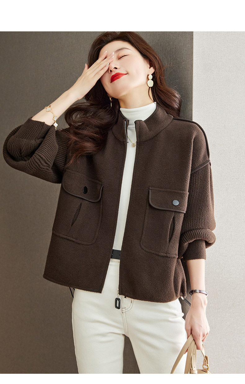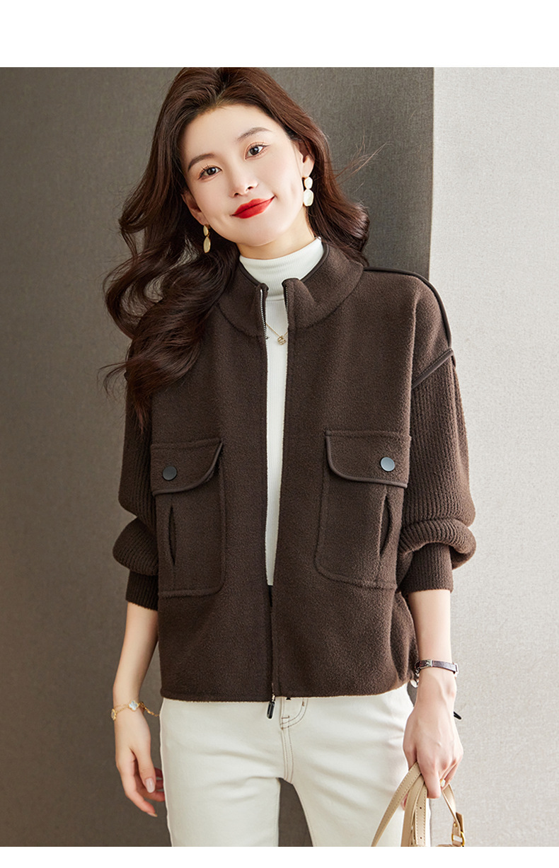 小香风毛呢外套,立领气质针织开衫CC-ML-B683