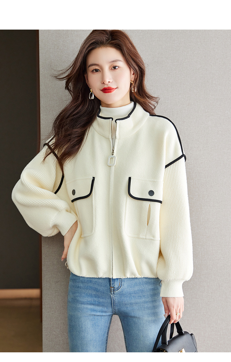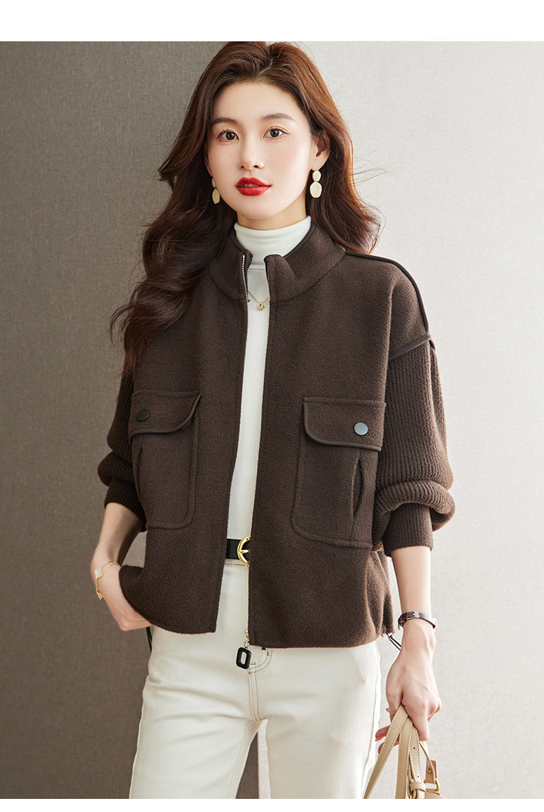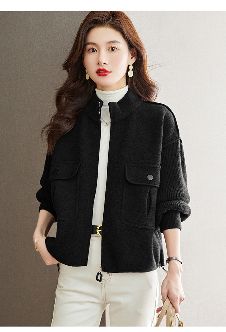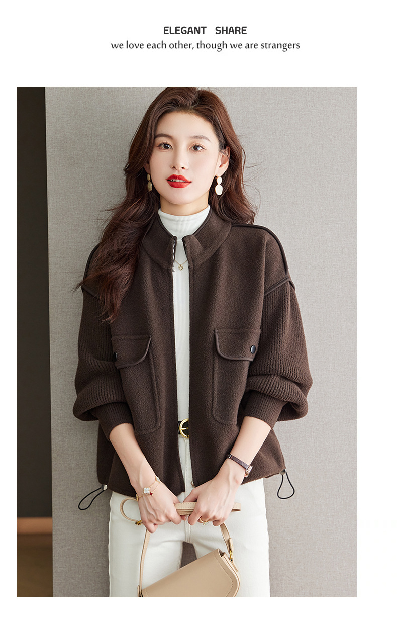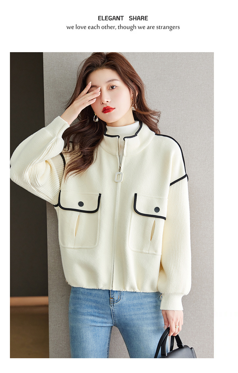 小香风毛呢外套,立领气质针织开衫CC-ML-B683