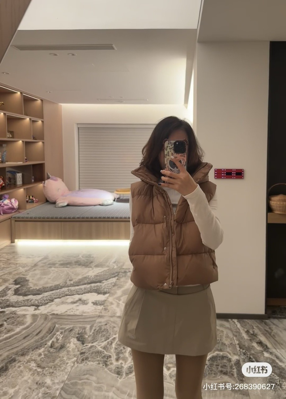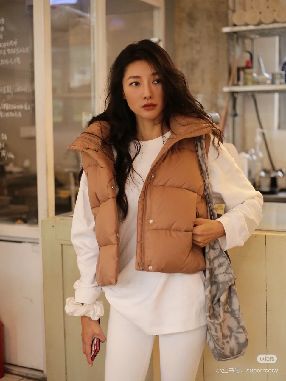 填充:这款马甲不是羽绒的 是珍珠棉也可以叫羽绒棉, 颗粒非常小~ 通过充棉工艺填充~ 蓬松度高, 厚实保暖!!