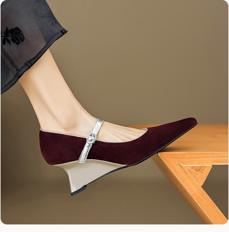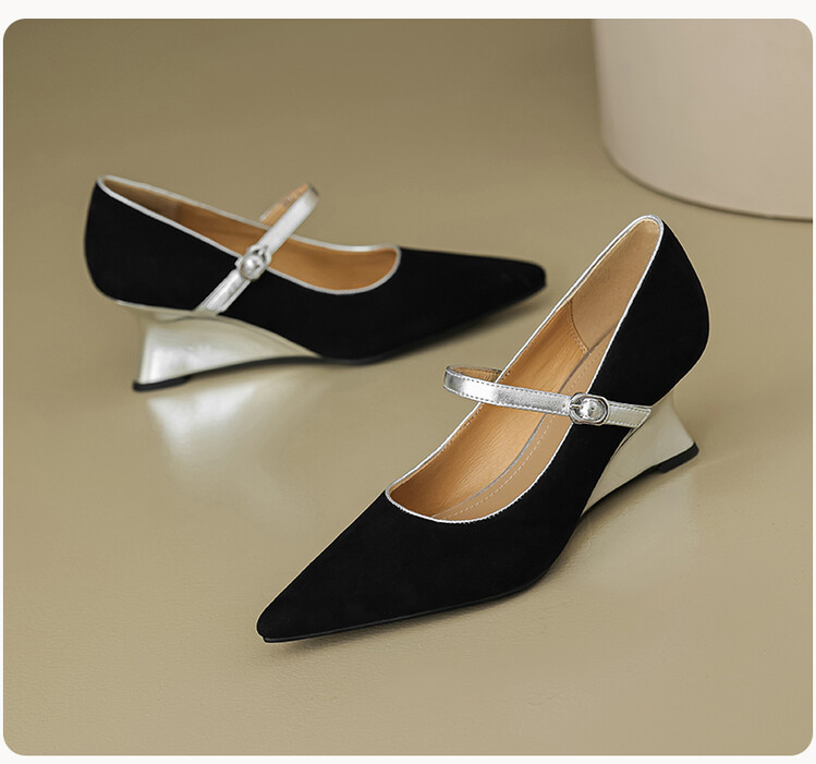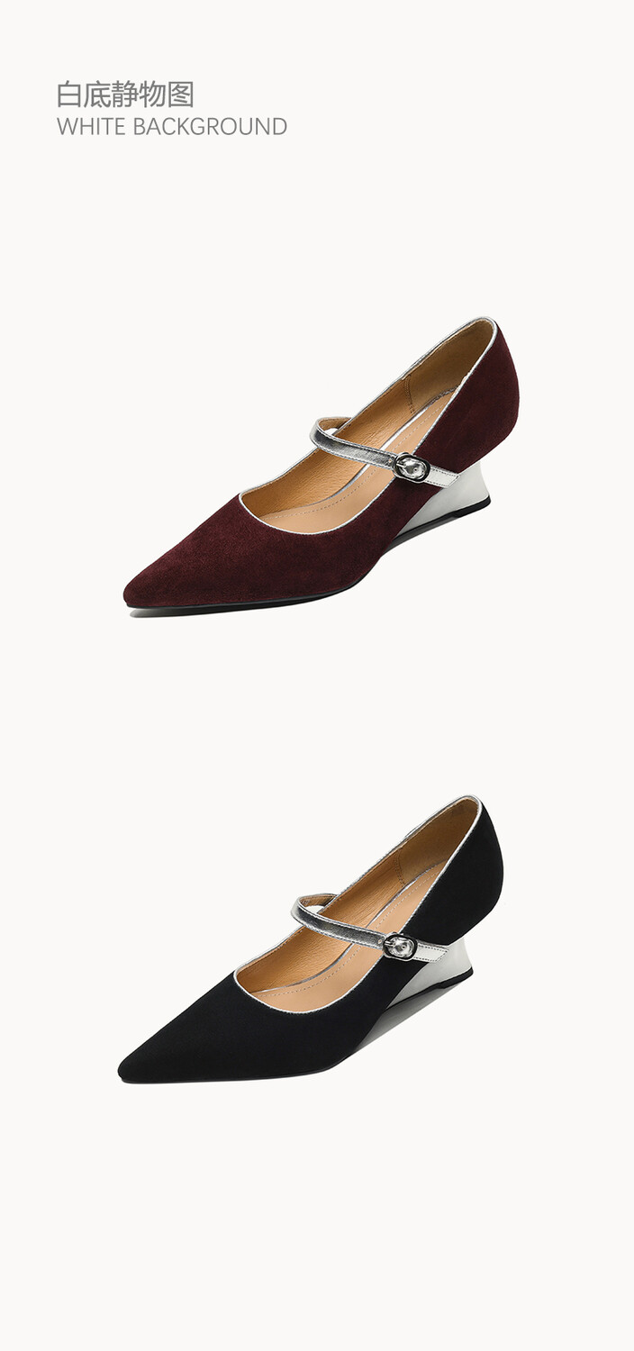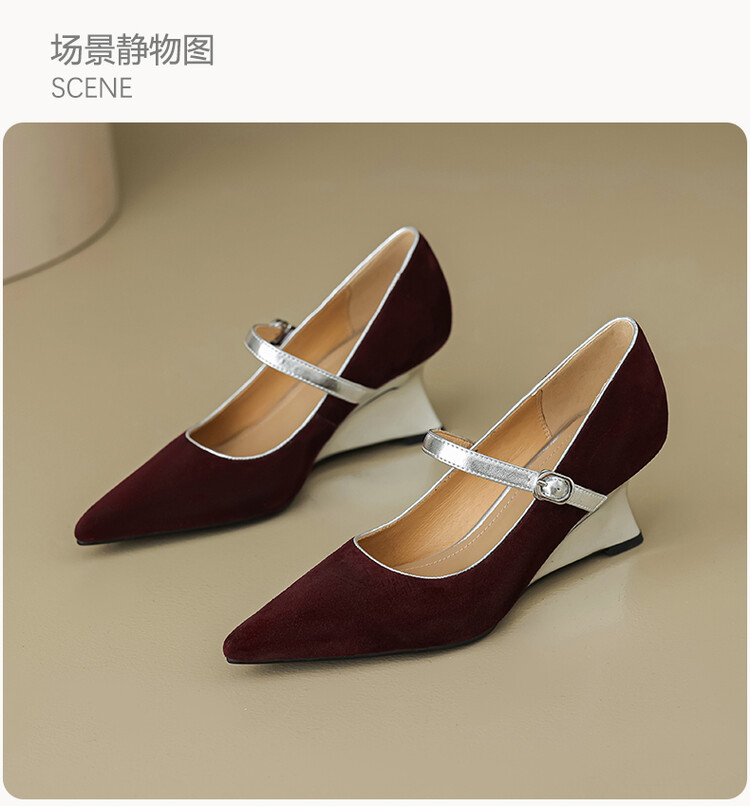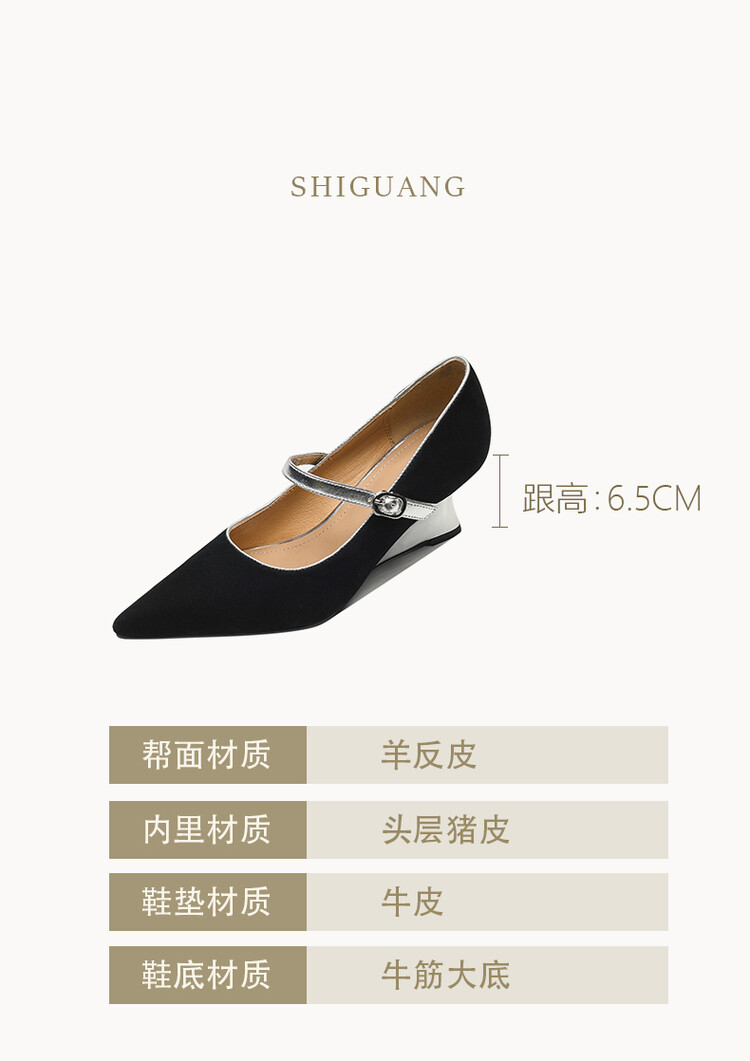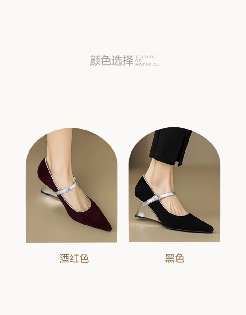 【预售5天】春季新款,坡跟高跟鞋一字式扣带单鞋尖头女士皮鞋QJR&G207-1