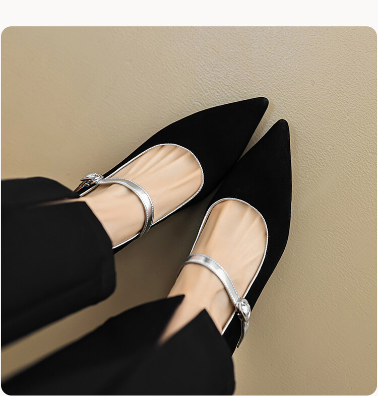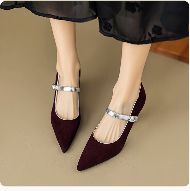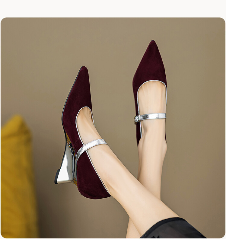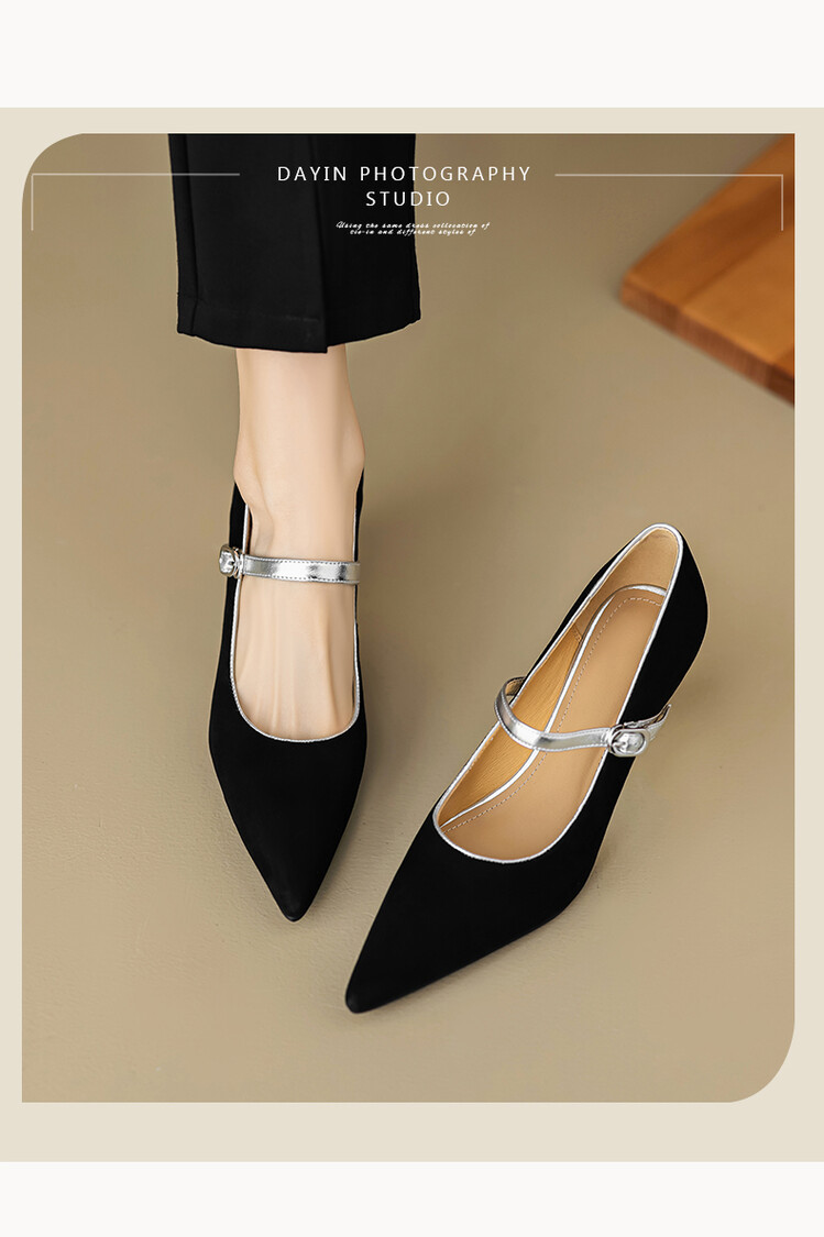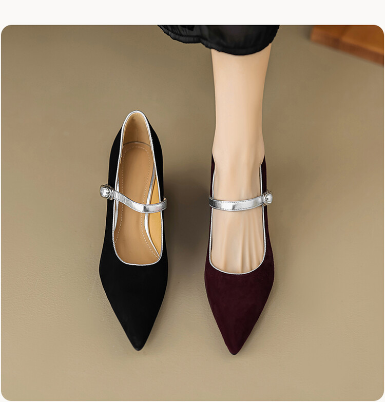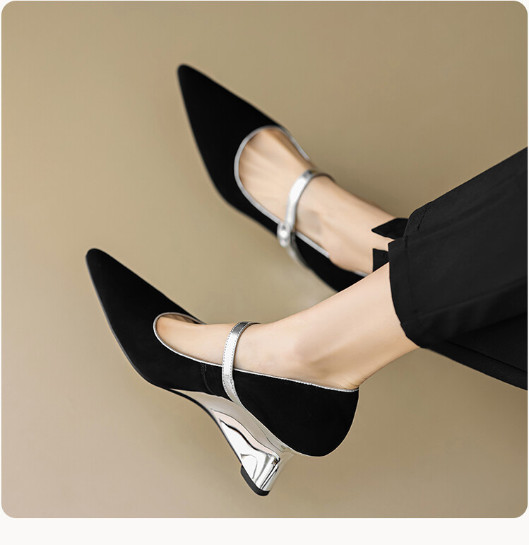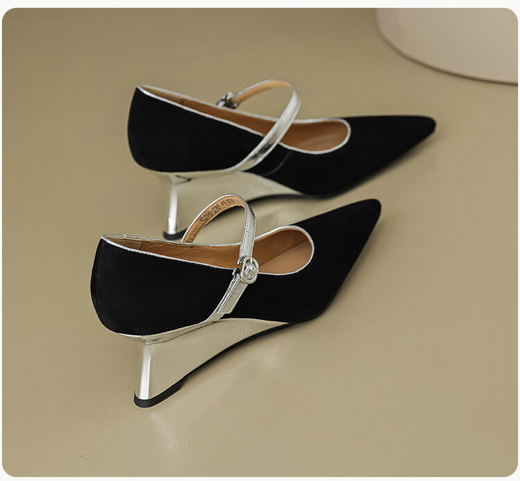 【预售5天】春季新款,坡跟高跟鞋一字式扣带单鞋尖头女士皮鞋QJR&G207-1