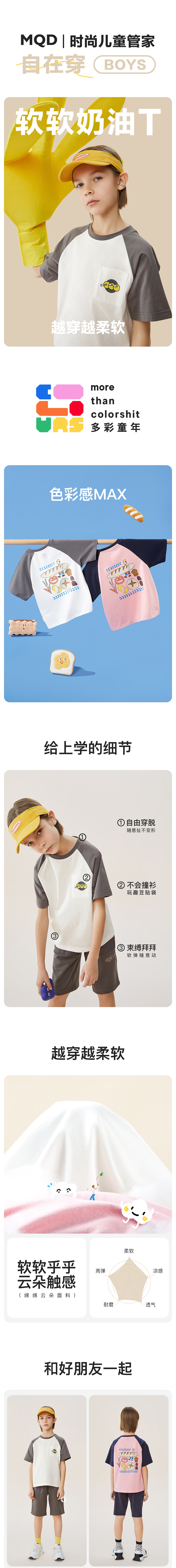 【秒1】【MQD】【云朵棉】童装男童年夏季卡通面包短袖清凉T恤中大童潮
