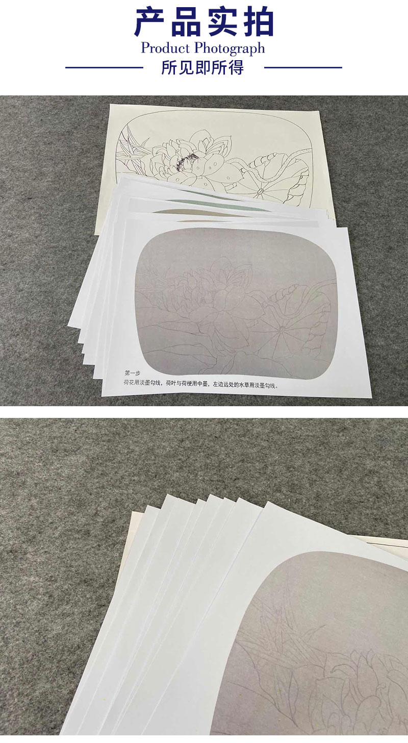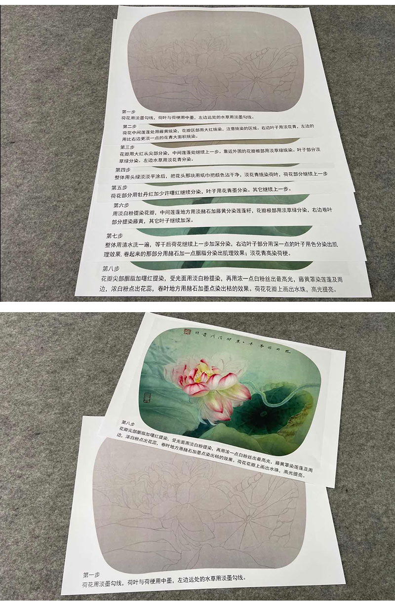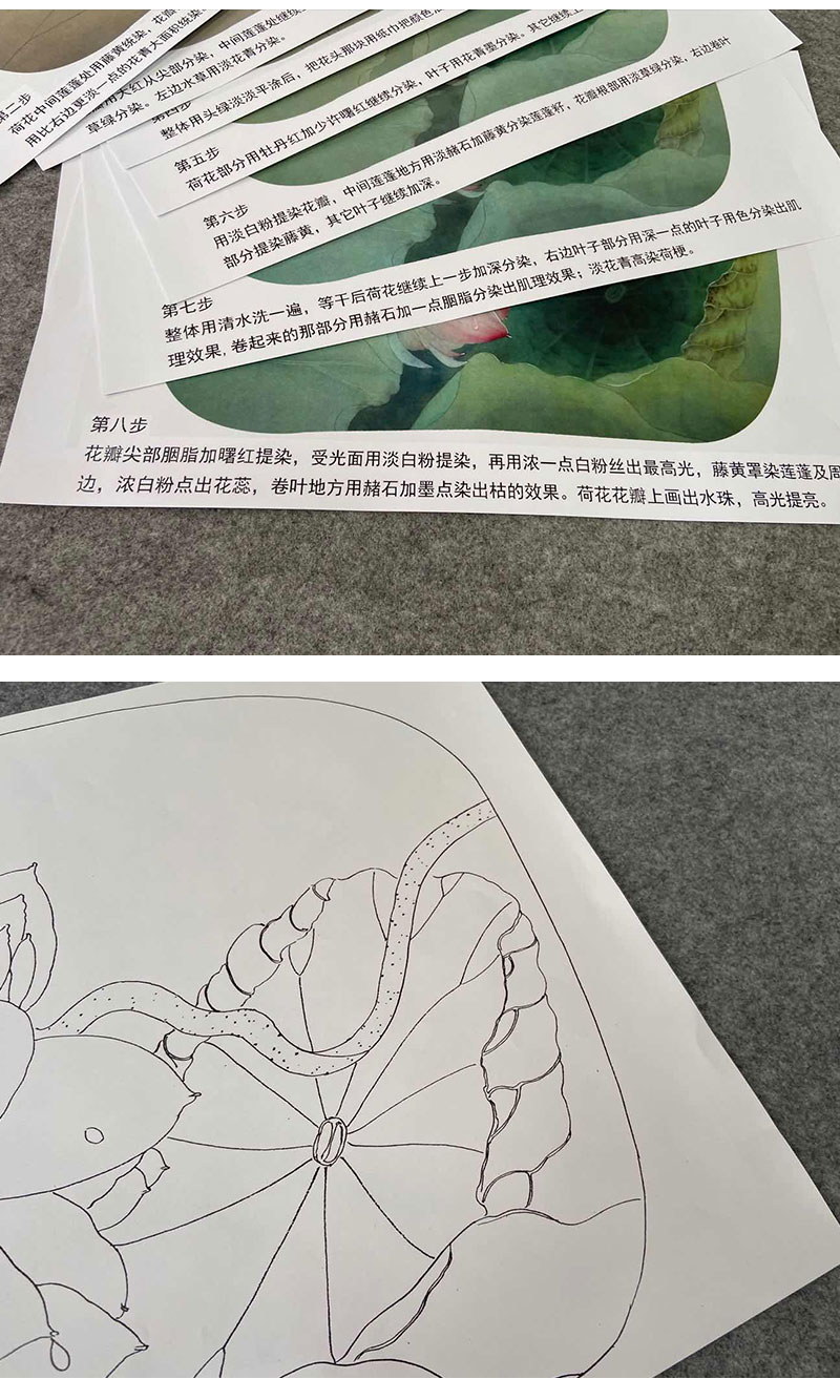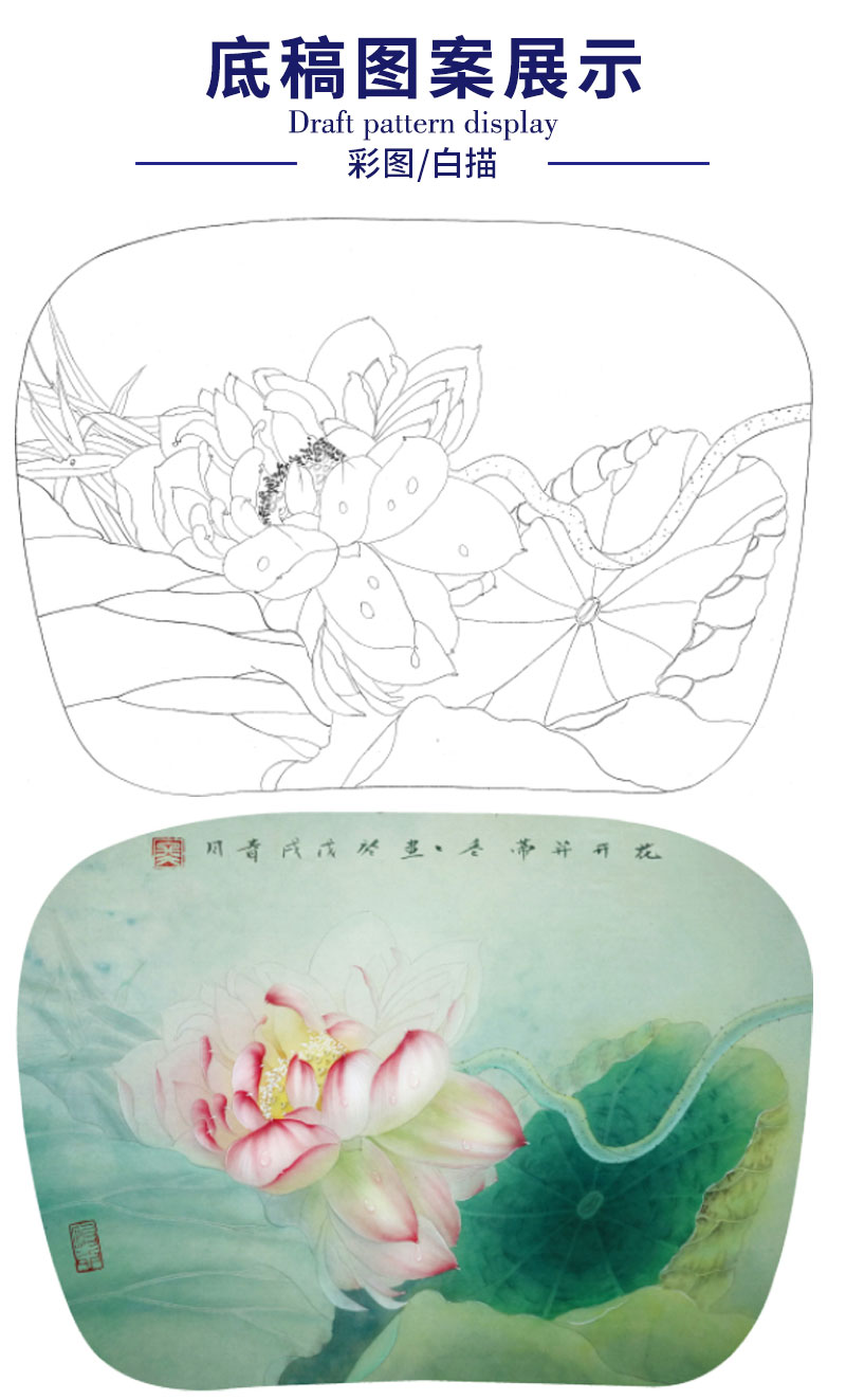 【有步骤、大彩图】杨冬冬工笔画白描底稿小品《花开并蒂》荷花初学者临摹花鸟线稿HD40