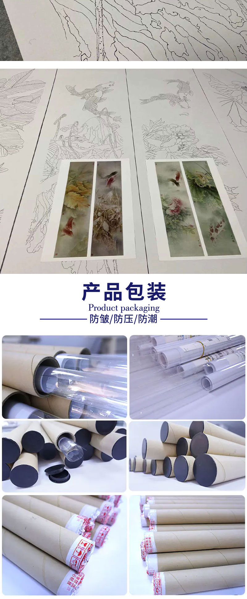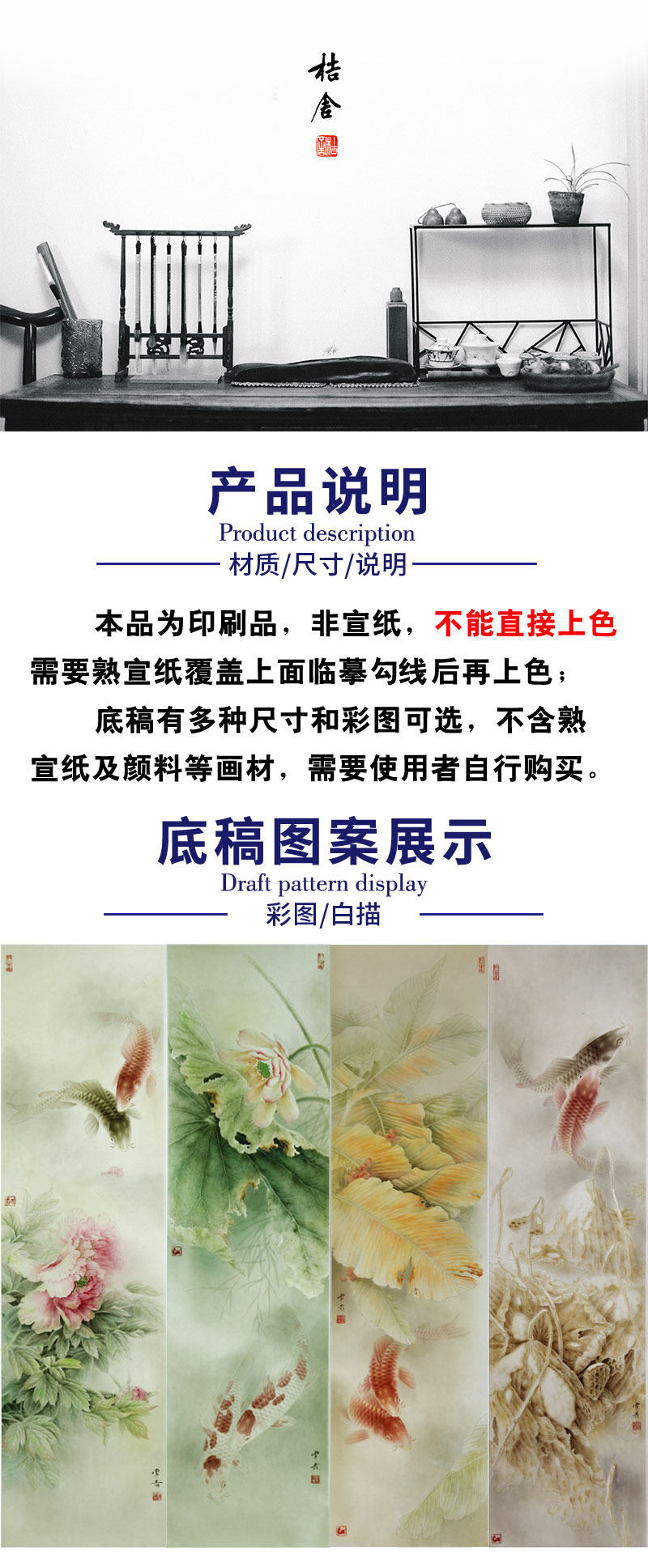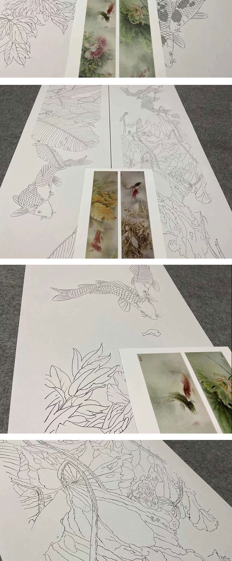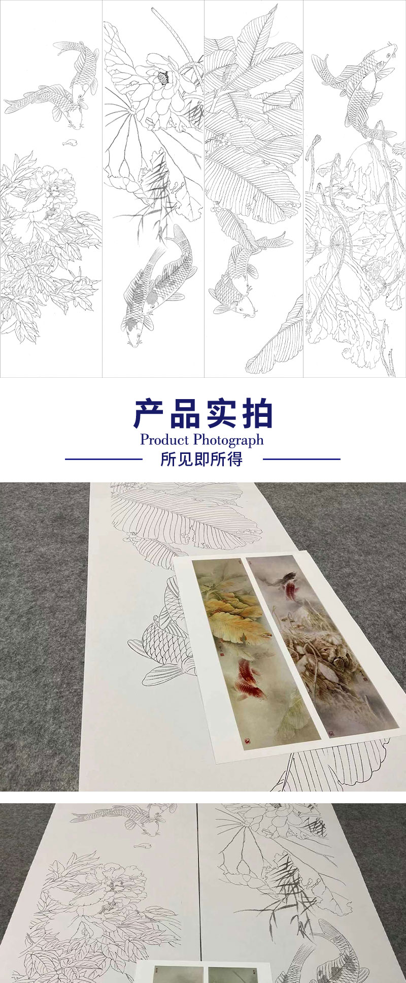【四条屏】龚雪青工笔画白描底稿荷花鲤鱼图临摹勾线花鸟线稿XQ69