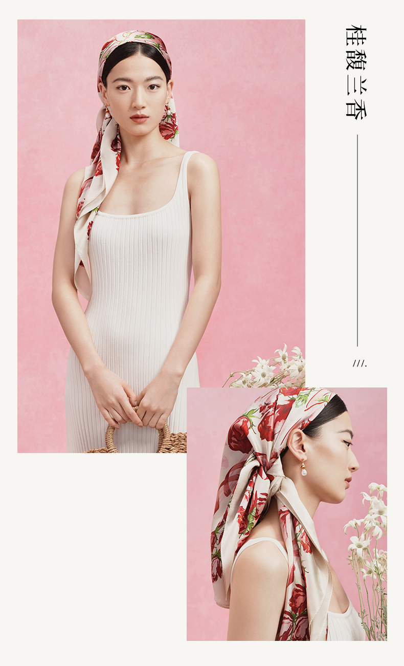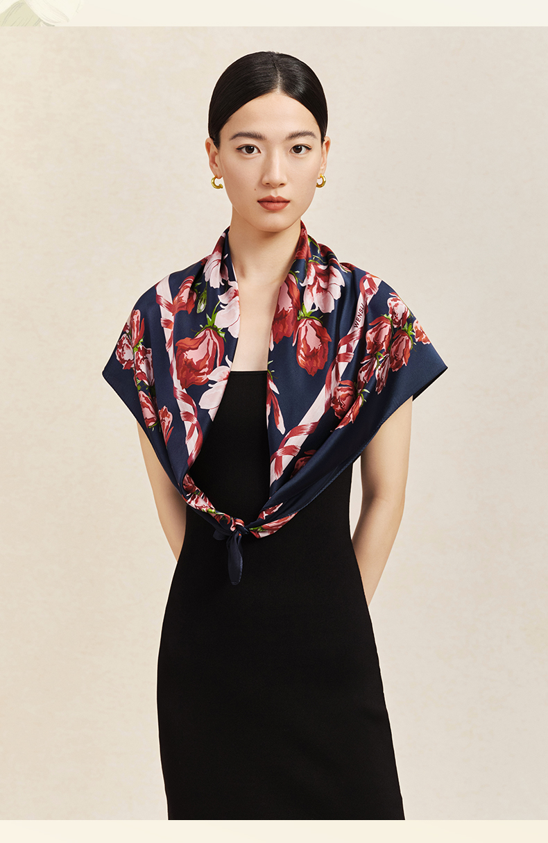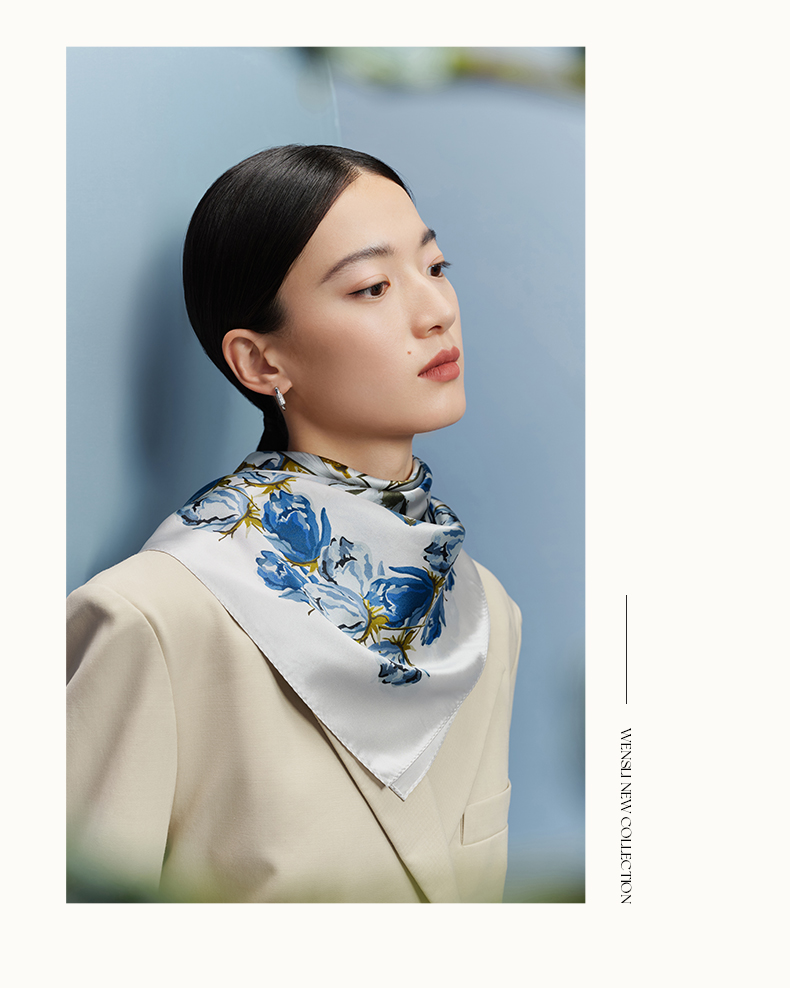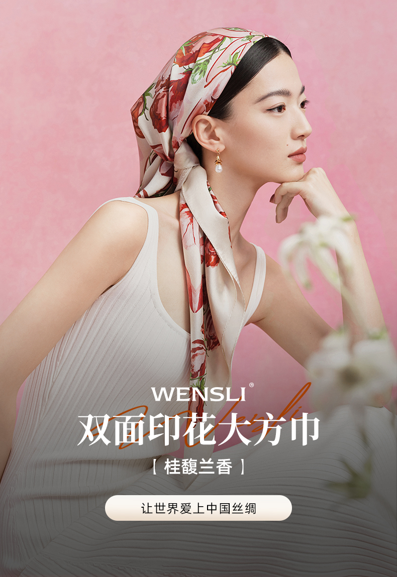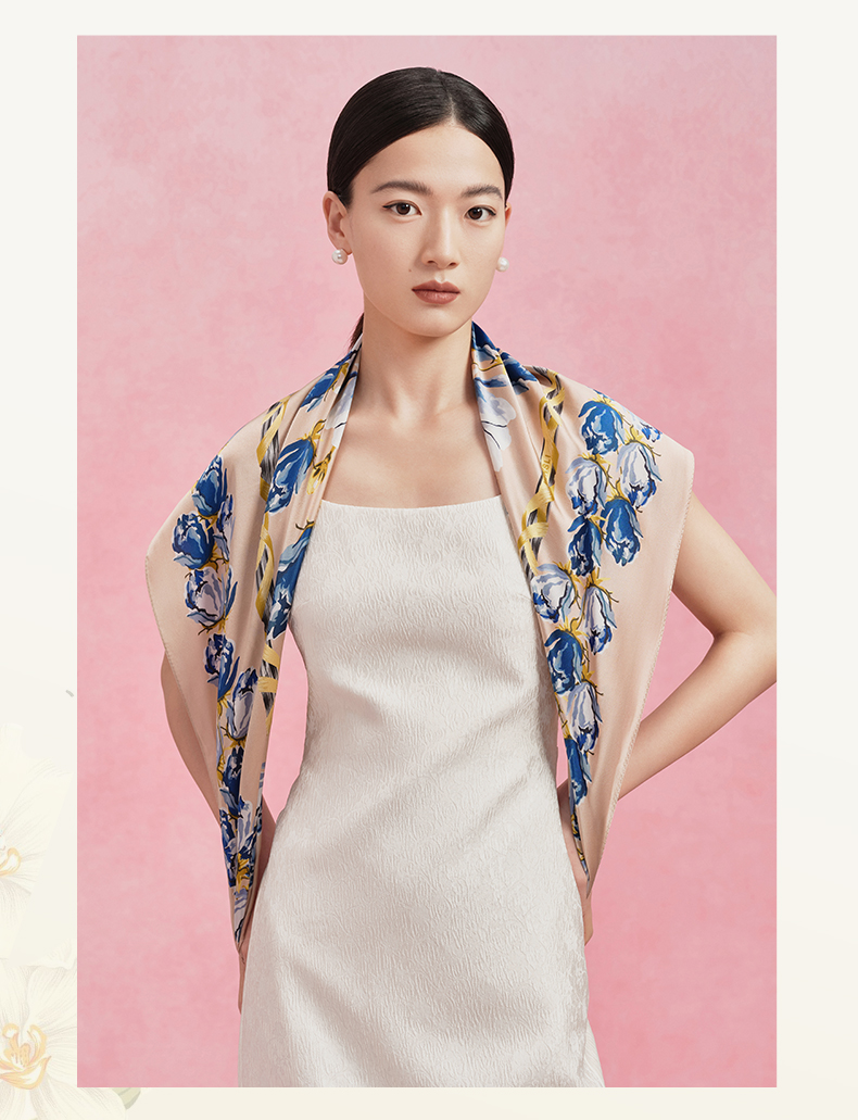 万事利“桂馥兰香”88厘米双面印花真丝大方巾
