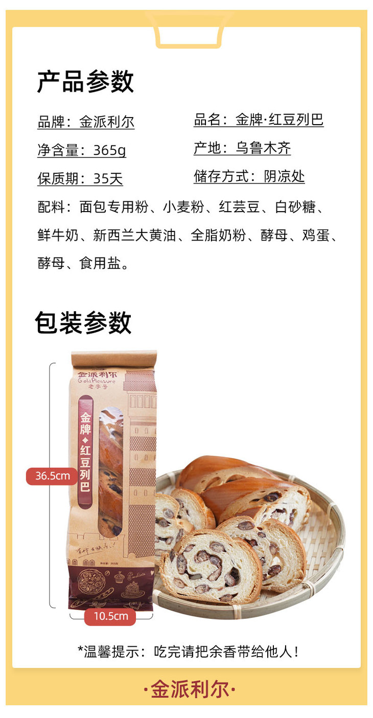 金派利尔大列巴(金派红豆+无蔗糖.黑麦)