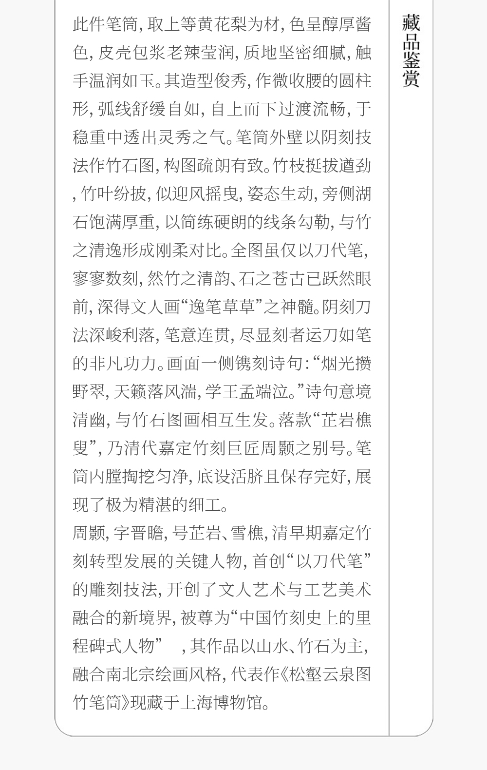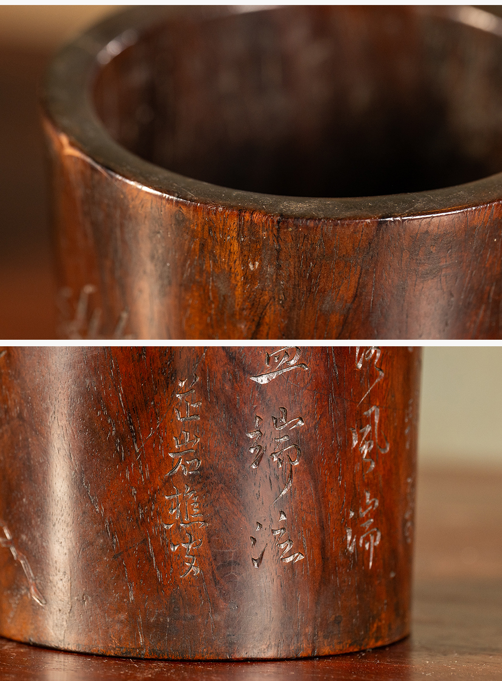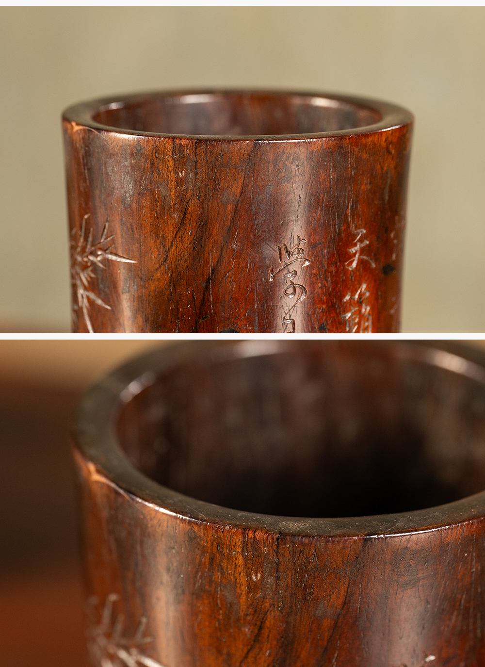 清 黄花梨阴刻竹石诗文笔筒