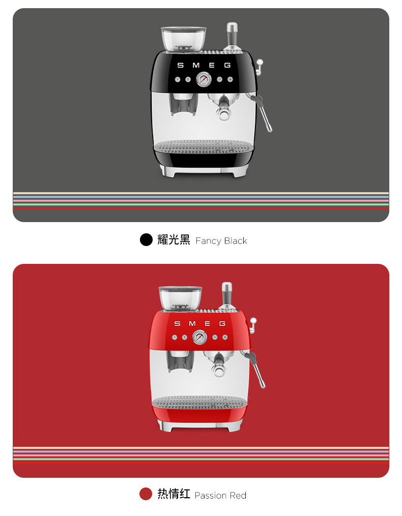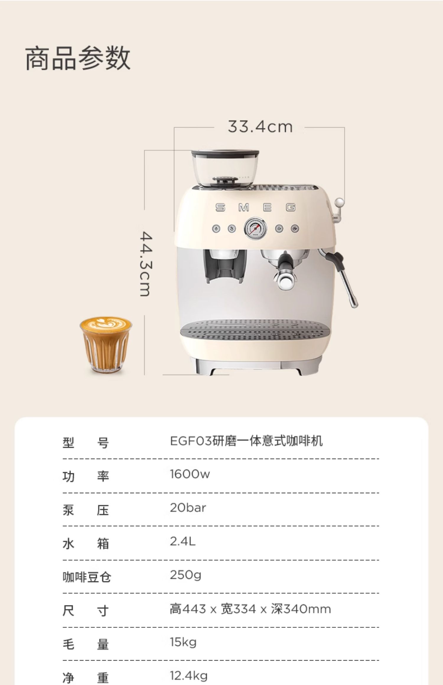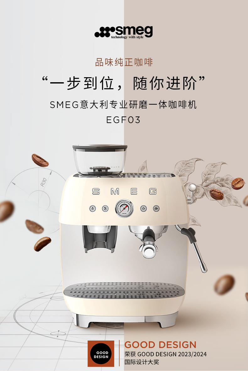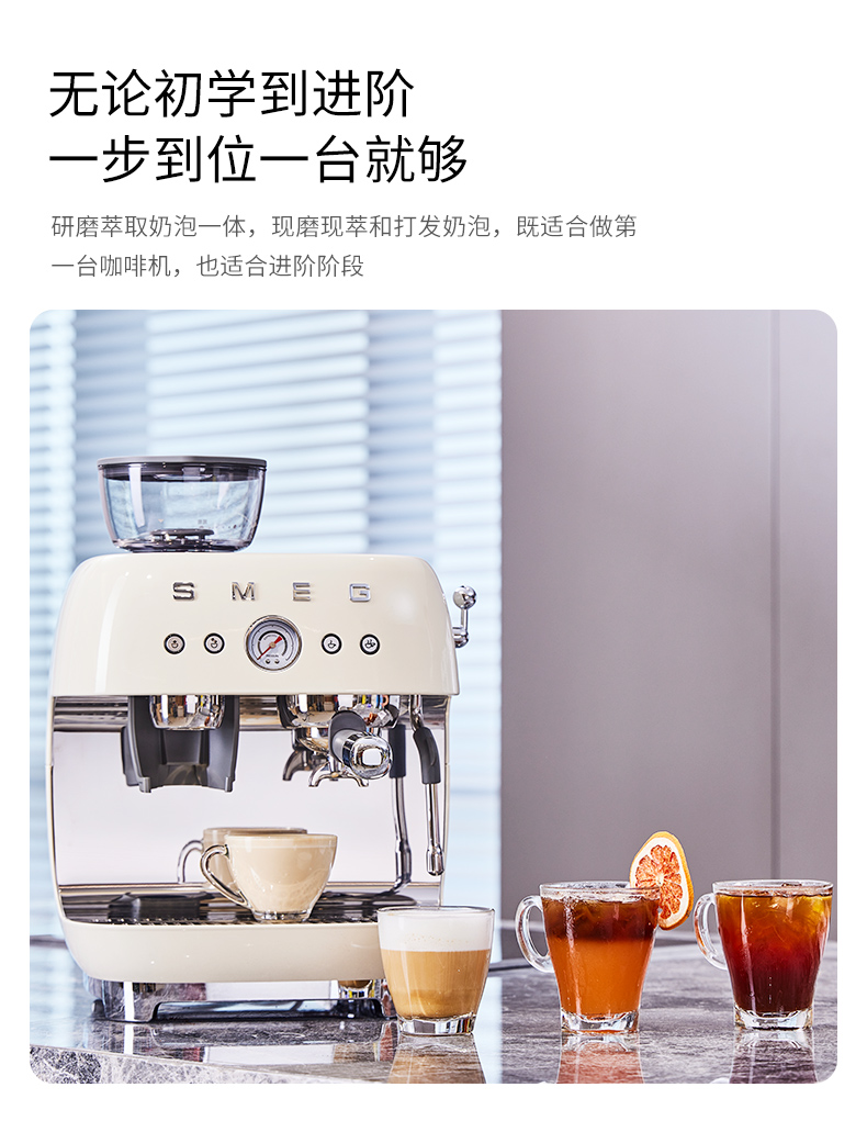 SMEG/斯麦格 新款EGF03研磨一体意式咖啡机一键现磨咖啡蒸汽打奶泡