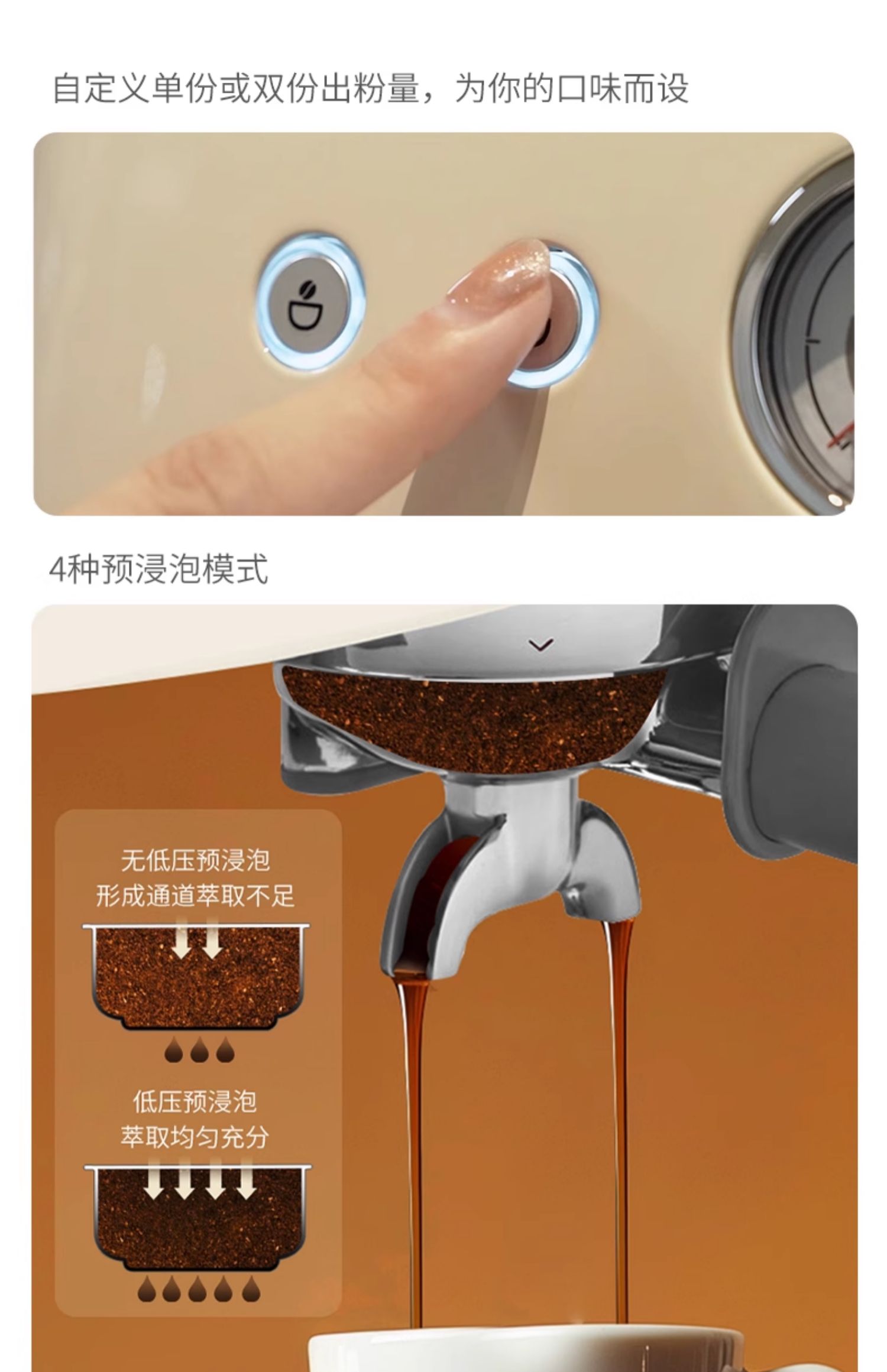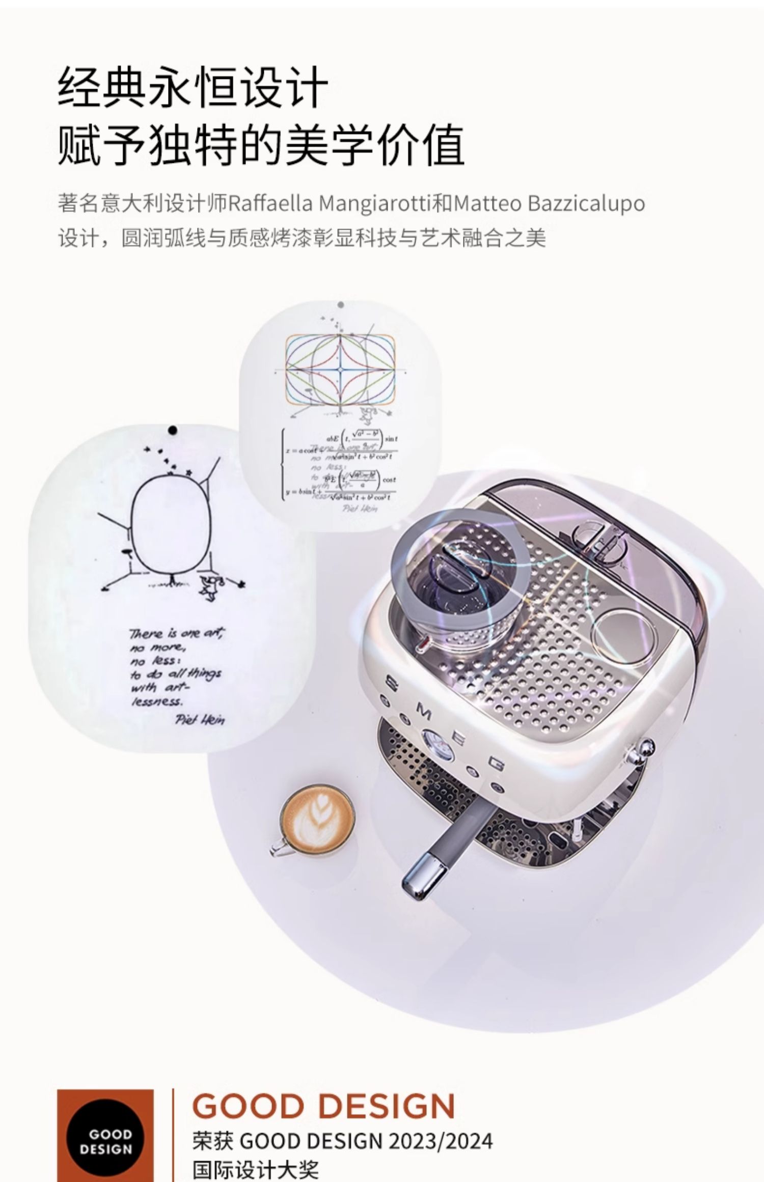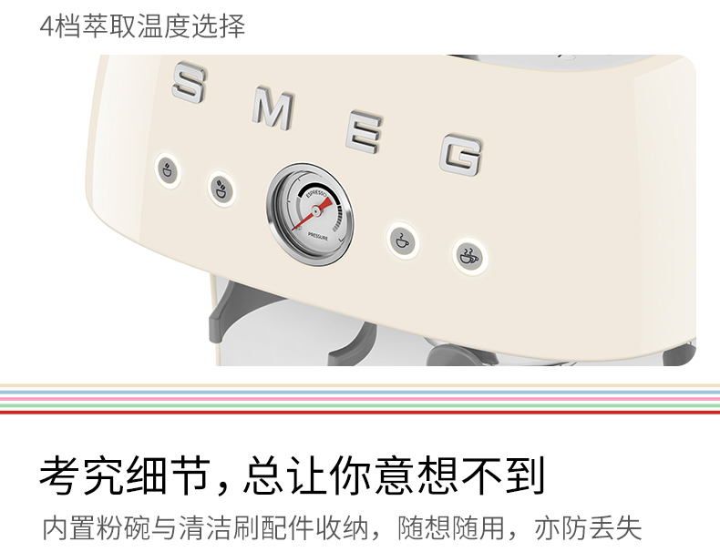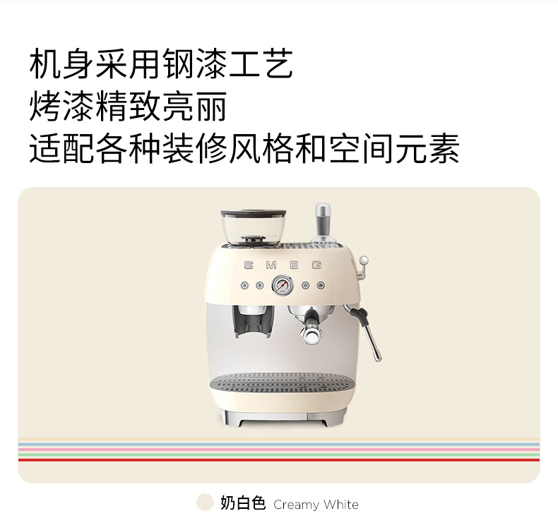 SMEG/斯麦格 新款EGF03研磨一体意式咖啡机一键现磨咖啡蒸汽打奶泡