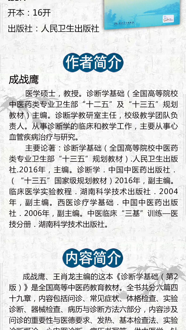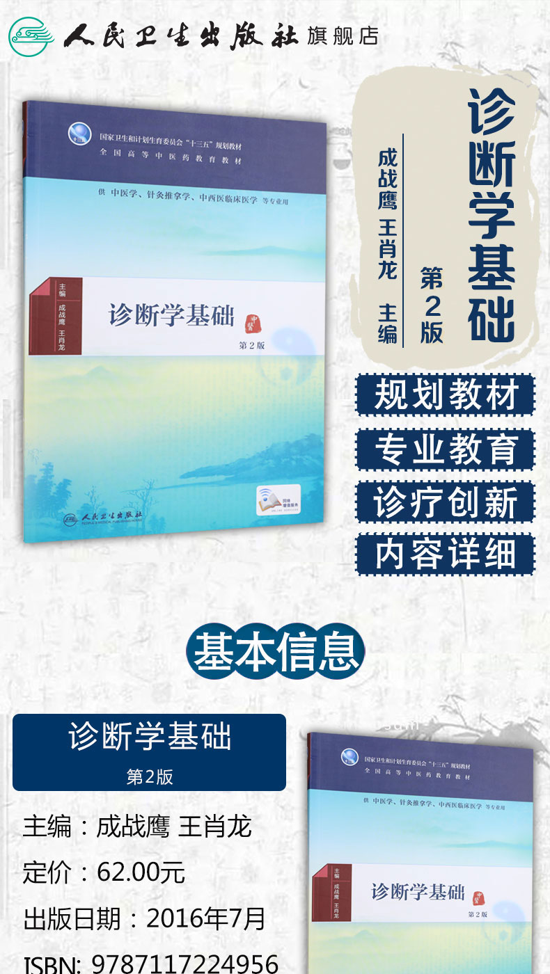 诊断学基础 第2版 [中医药优秀图书] 成战鹰 王肖龙 主编 中医学、针灸推拿学、中西医临床医学等专业用 配增值