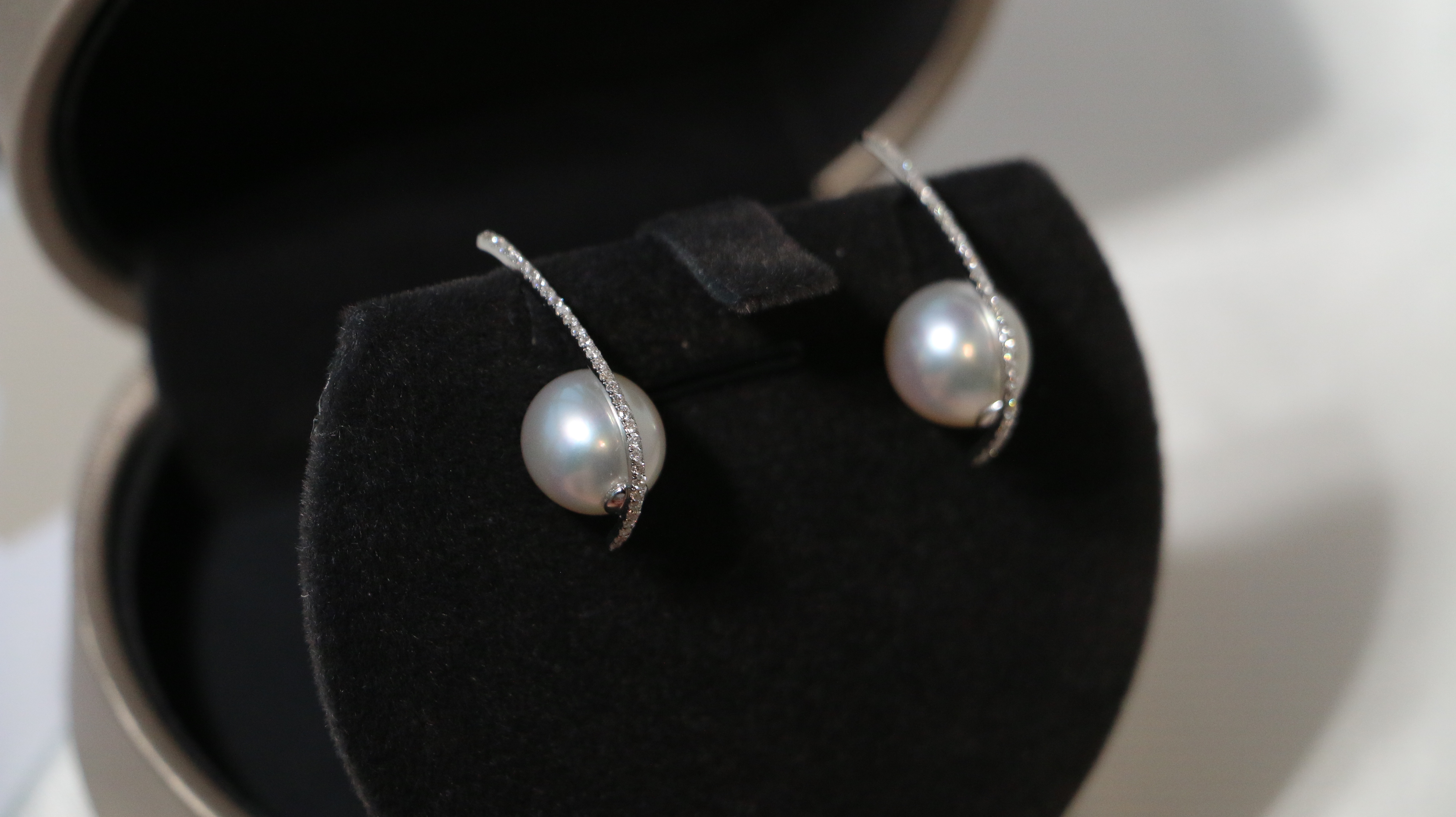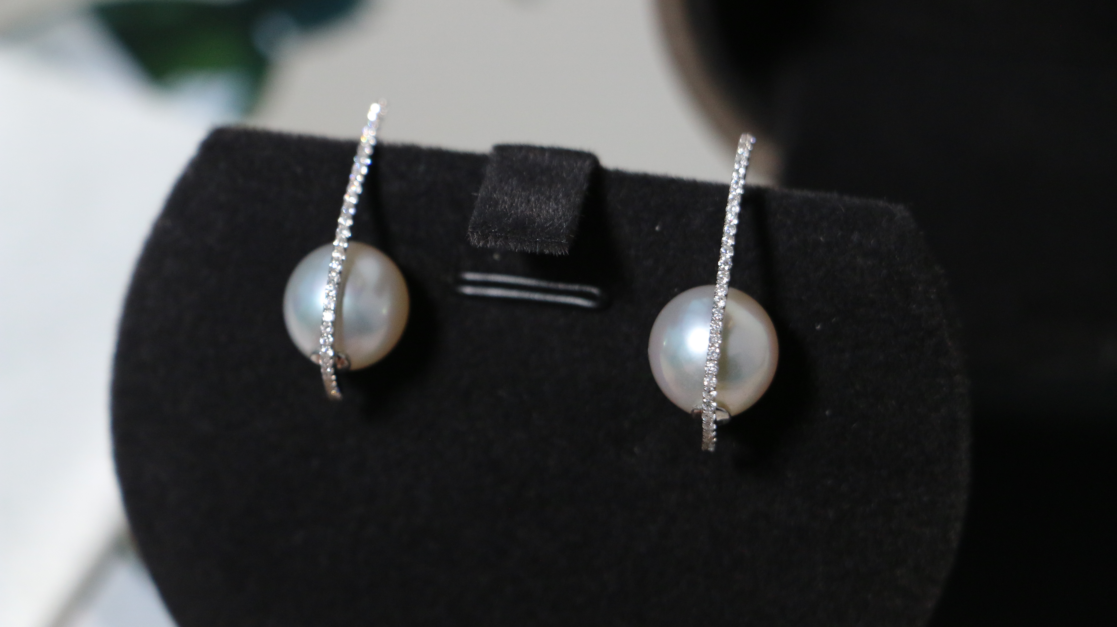 甄珠贝 时尚耳环 澳白8-8.5mm 18k白金+钻石镶嵌