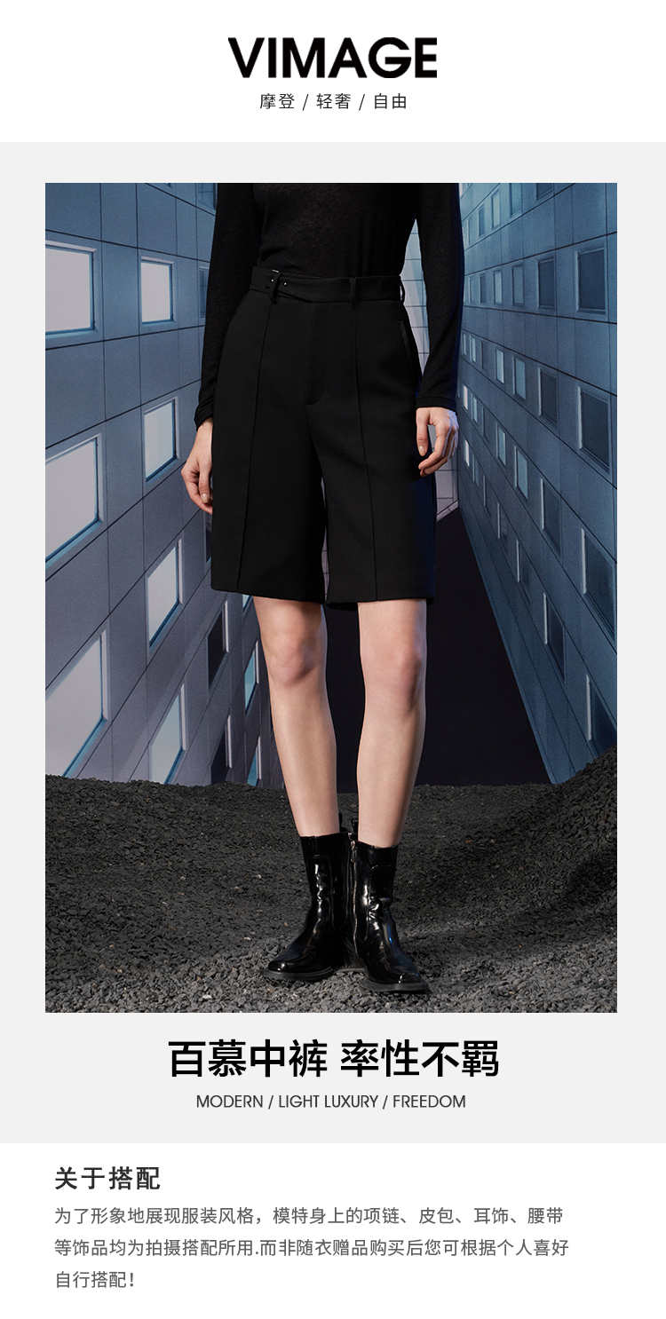 VIMAGE纬漫纪秋冬新款通勤百搭西装显瘦纯色简约短裤女裤V1805414