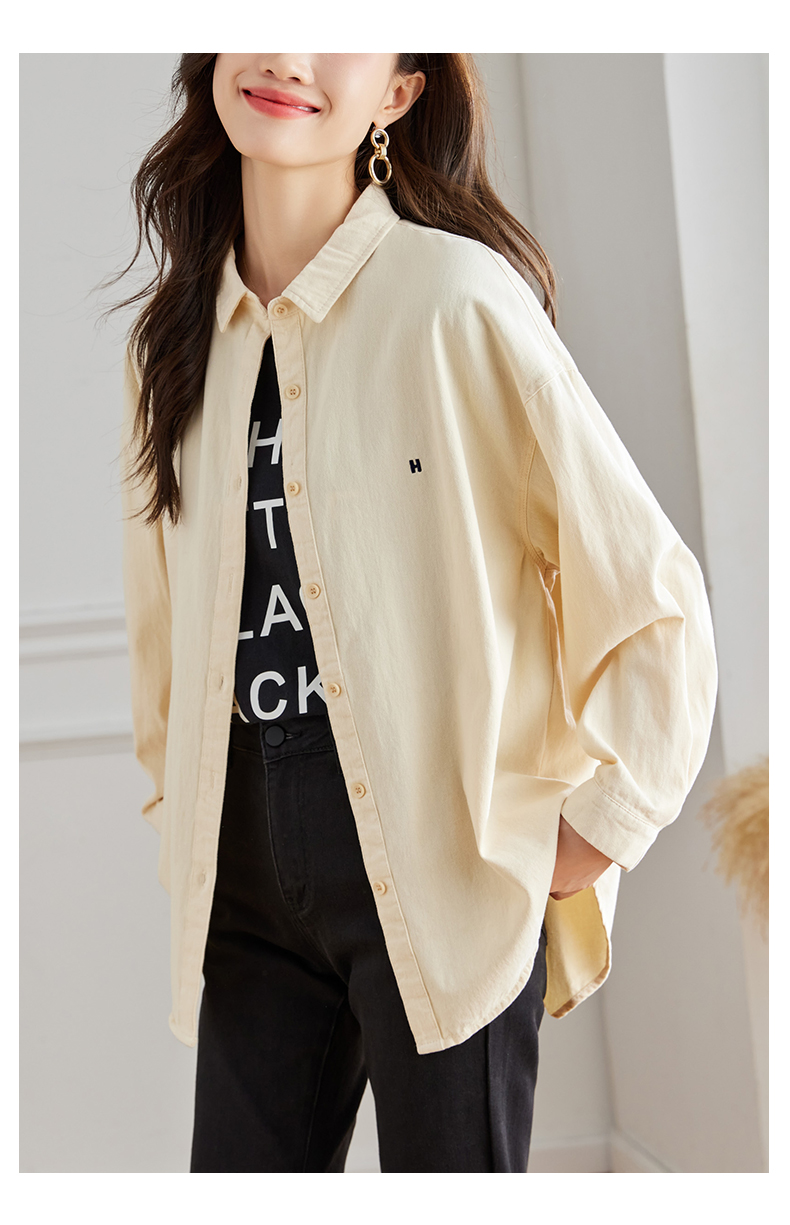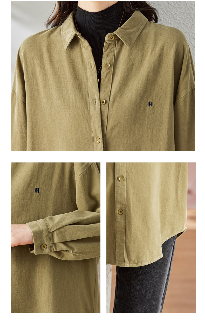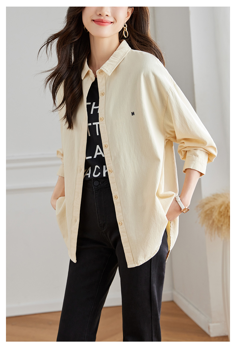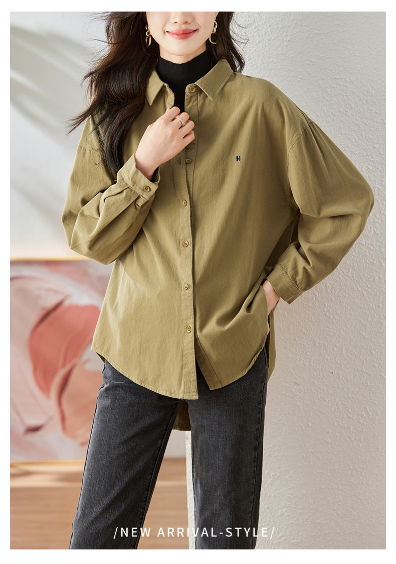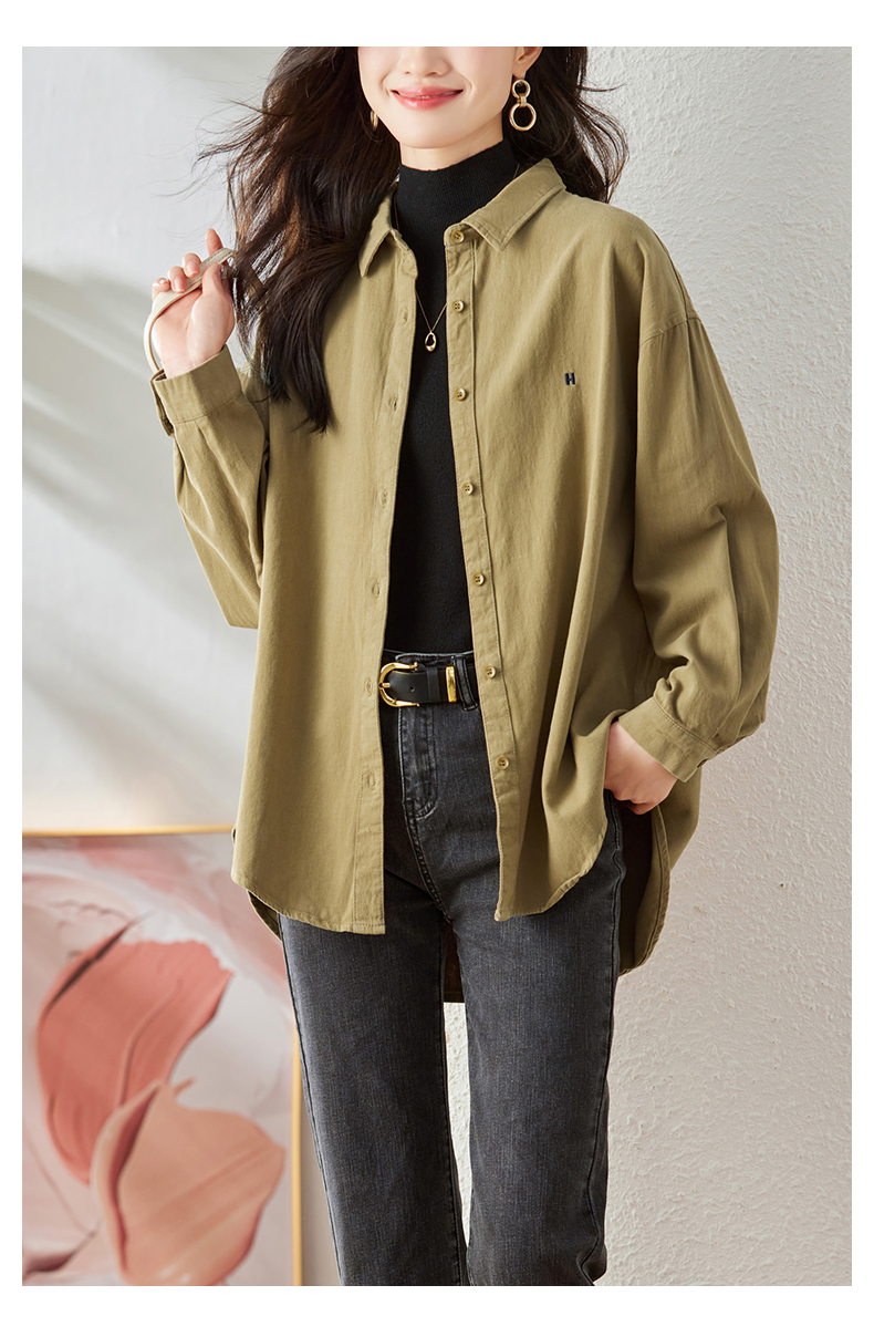 舒适叠穿打底,磨毛宽松韩版百搭单排扣中长款休闲衬衫HR-KFG39129