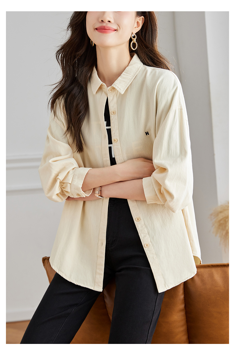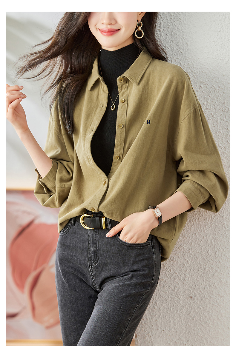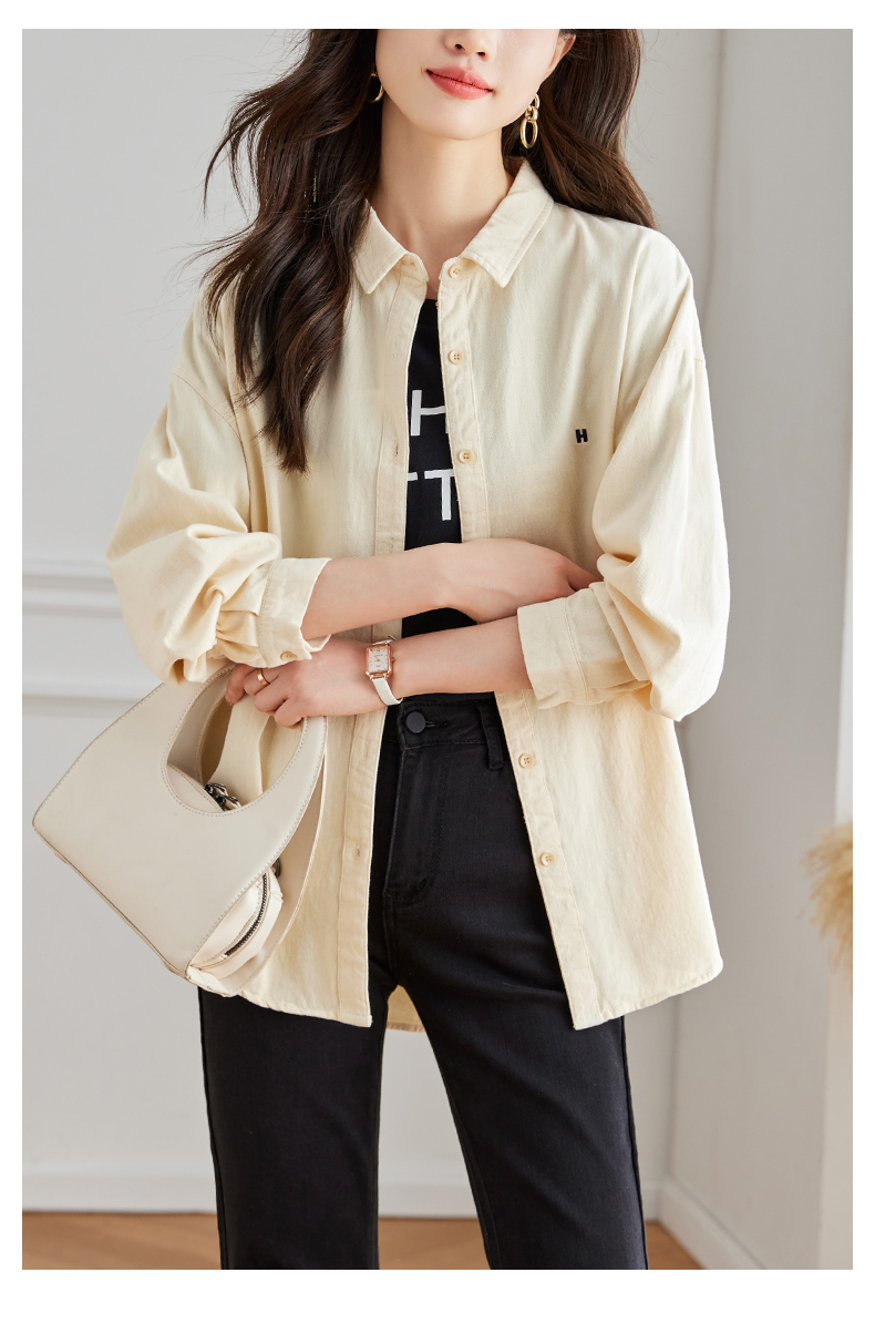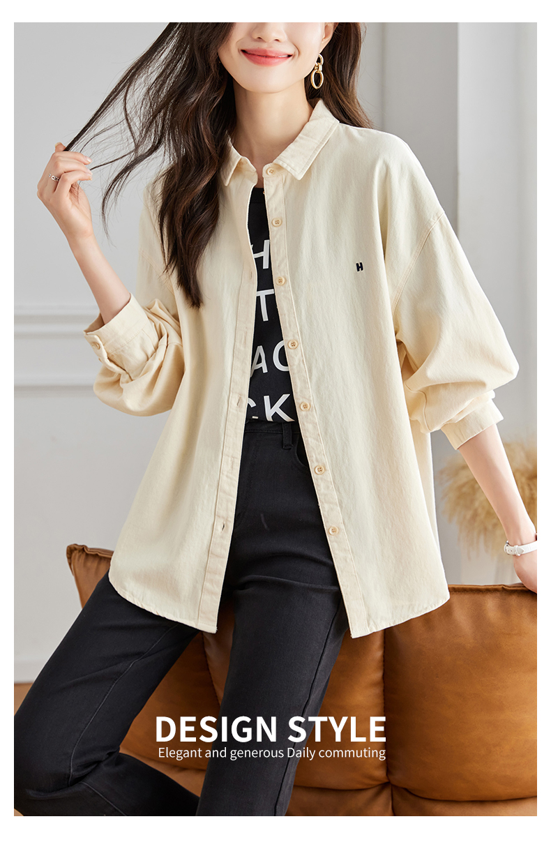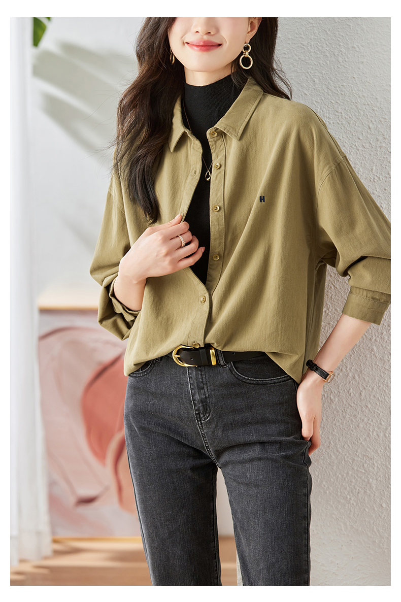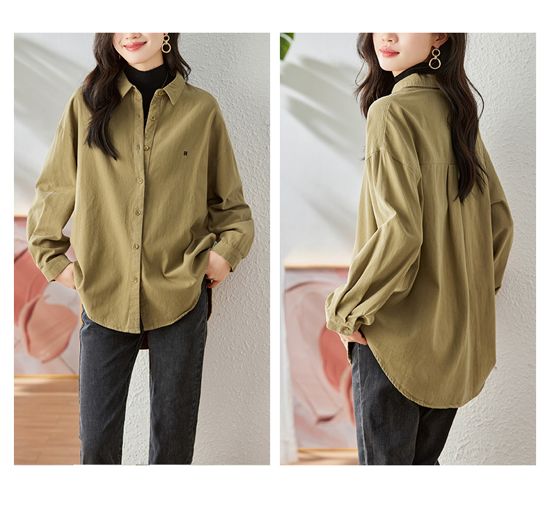 舒适叠穿打底,磨毛宽松韩版百搭单排扣中长款休闲衬衫HR-KFG39129
