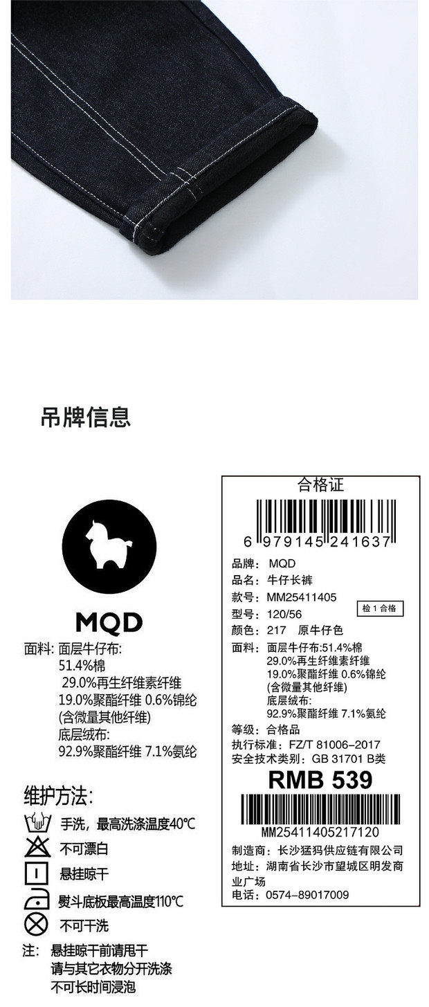 【MQD】童装男大童加绒裤子冬新款儿童学院街潮休闲百搭保暖牛仔裤