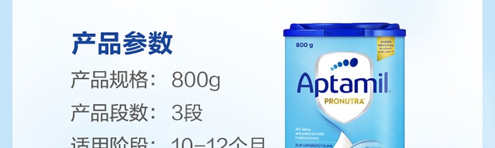 德国原装爱他美Aptamil婴幼儿奶粉3段 宝宝奶粉(10个月以上 800g)(26年6月)(新老包装随机发)【保税直发】