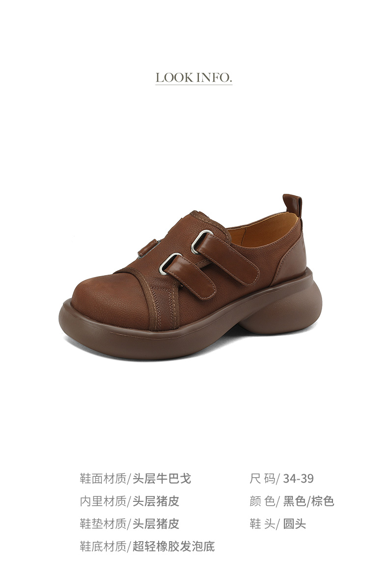 时尚百搭,头层牛巴戈+牛皮厚底单鞋MDY-C235-15
