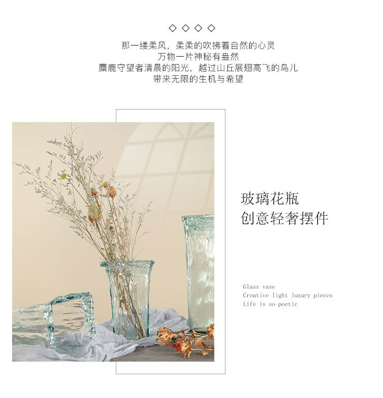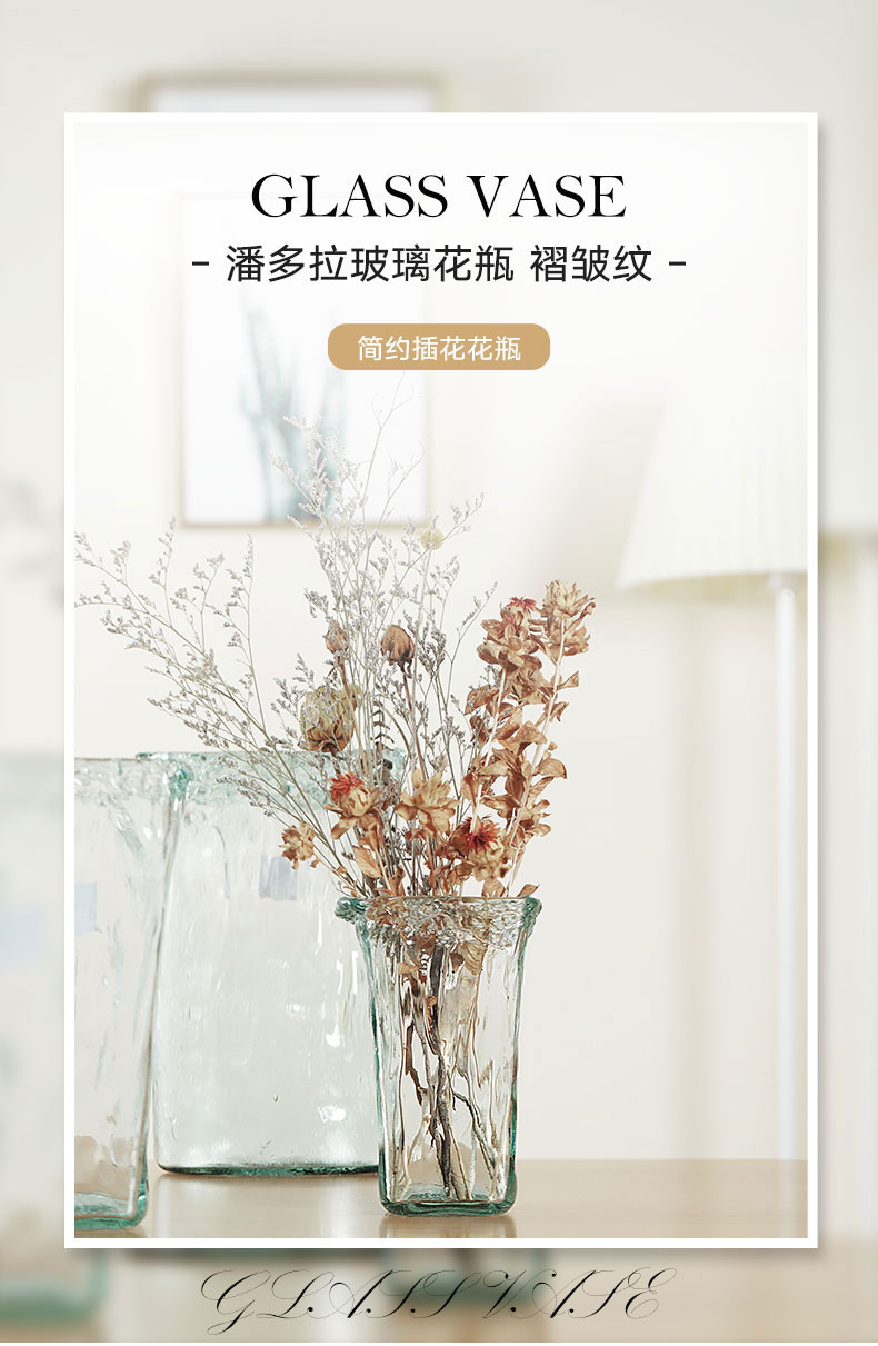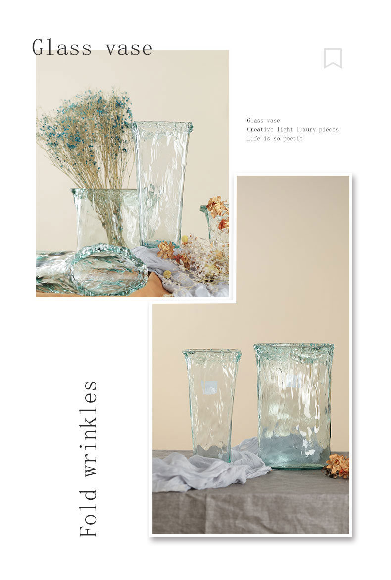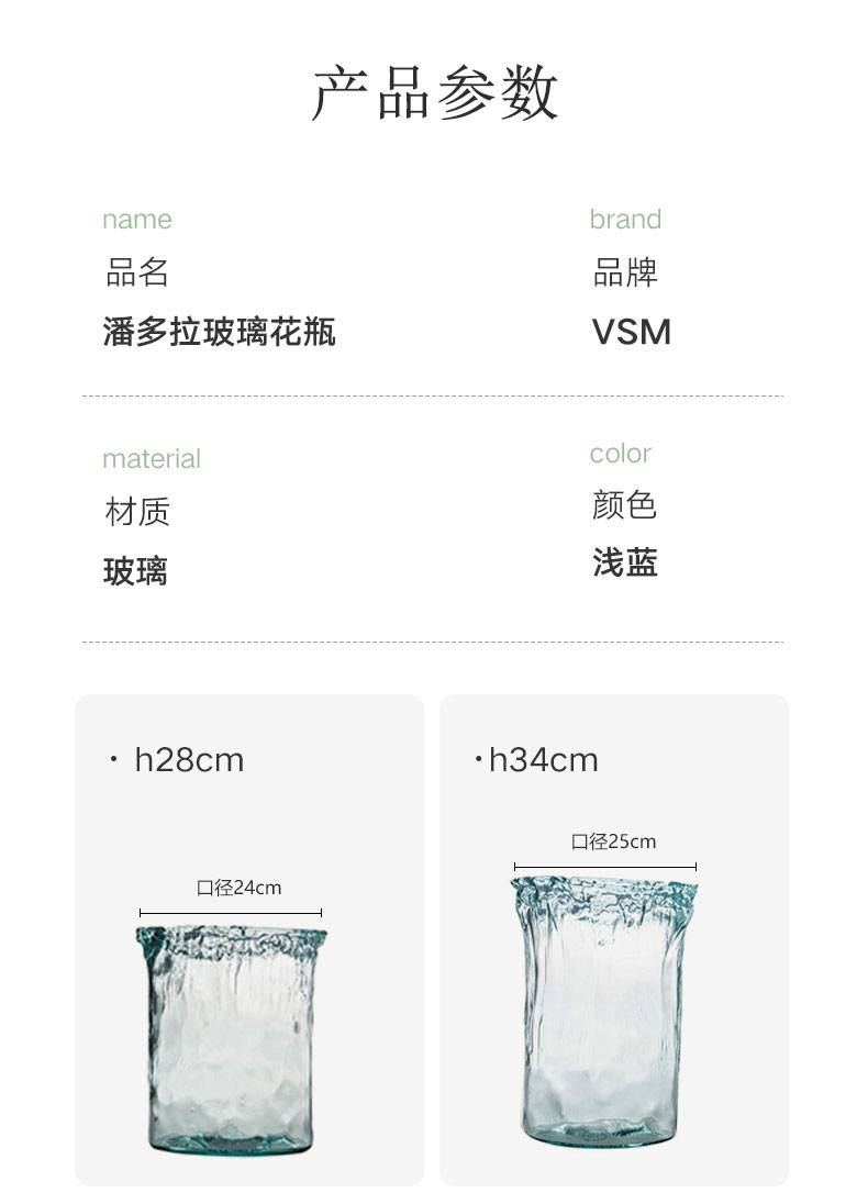 西班牙进口VSM潘多拉玻璃花瓶 褶皱纹 浅蓝 h20cm