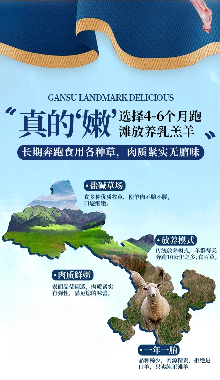 【品名】甘肃酒泉碱地散养滩羊(羊羔肉)