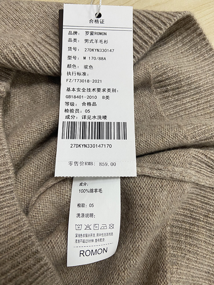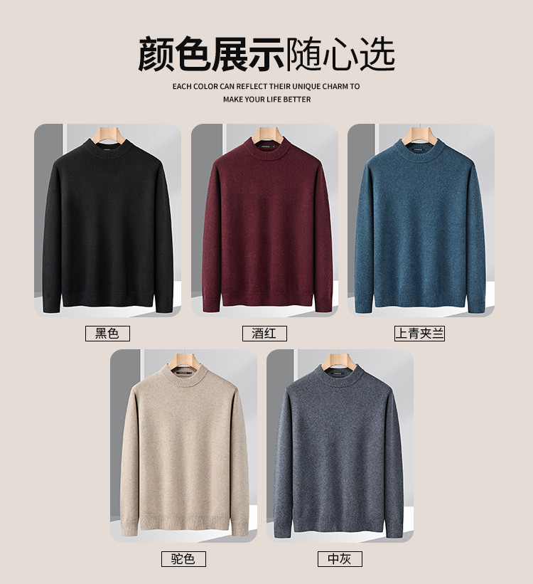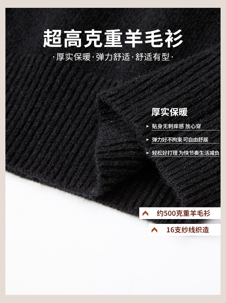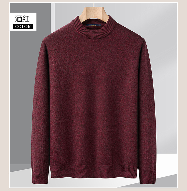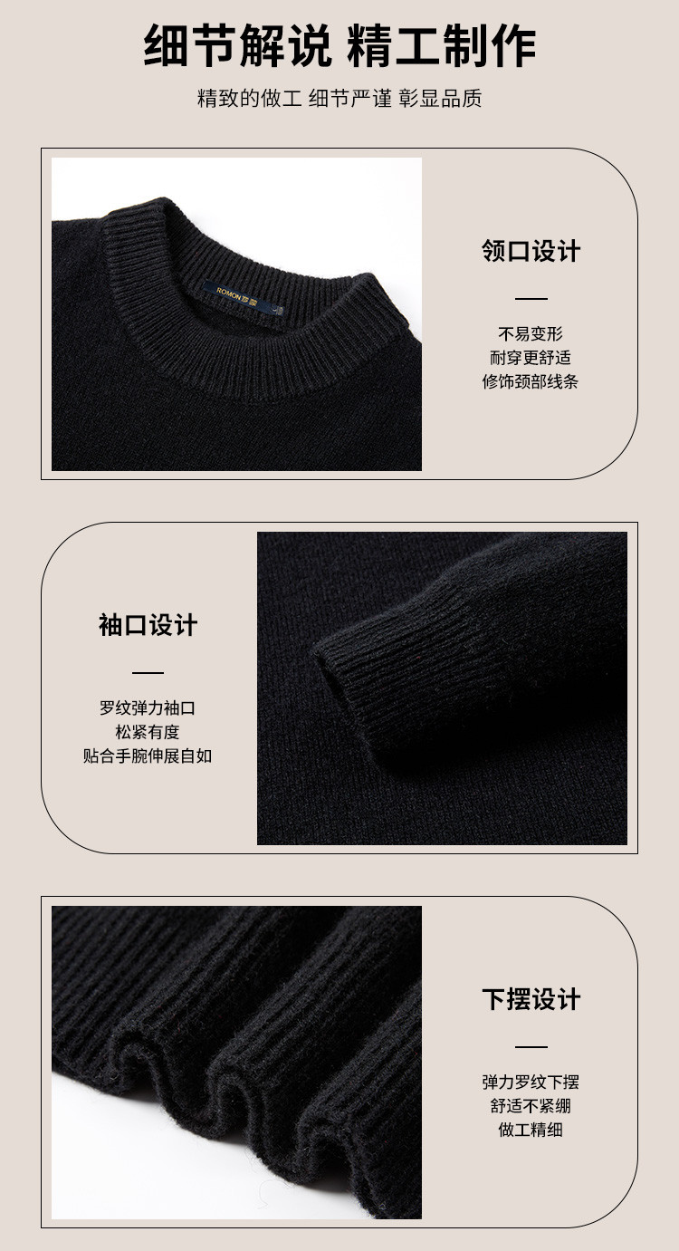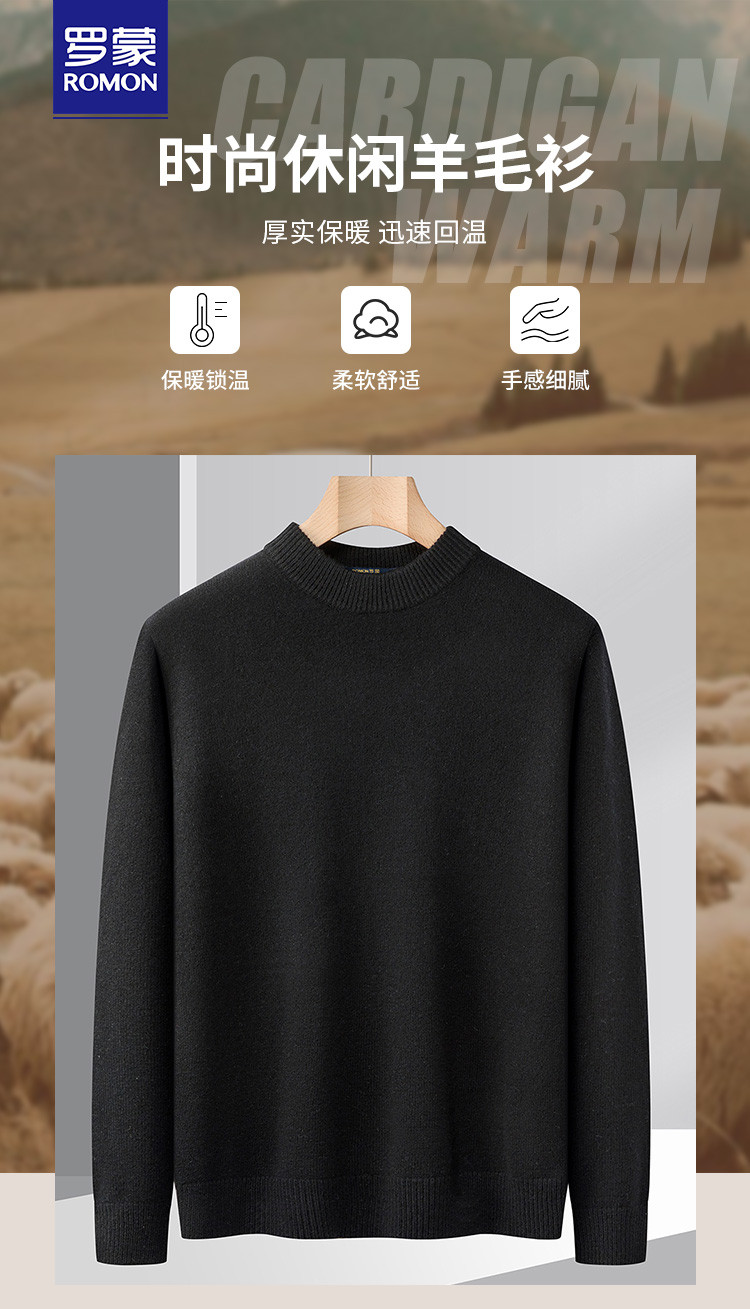 27DKYN3301【100绵羊毛】罗蒙秋冬男士羊毛衫加厚保暖纯色圆领基础百搭针织毛衣男