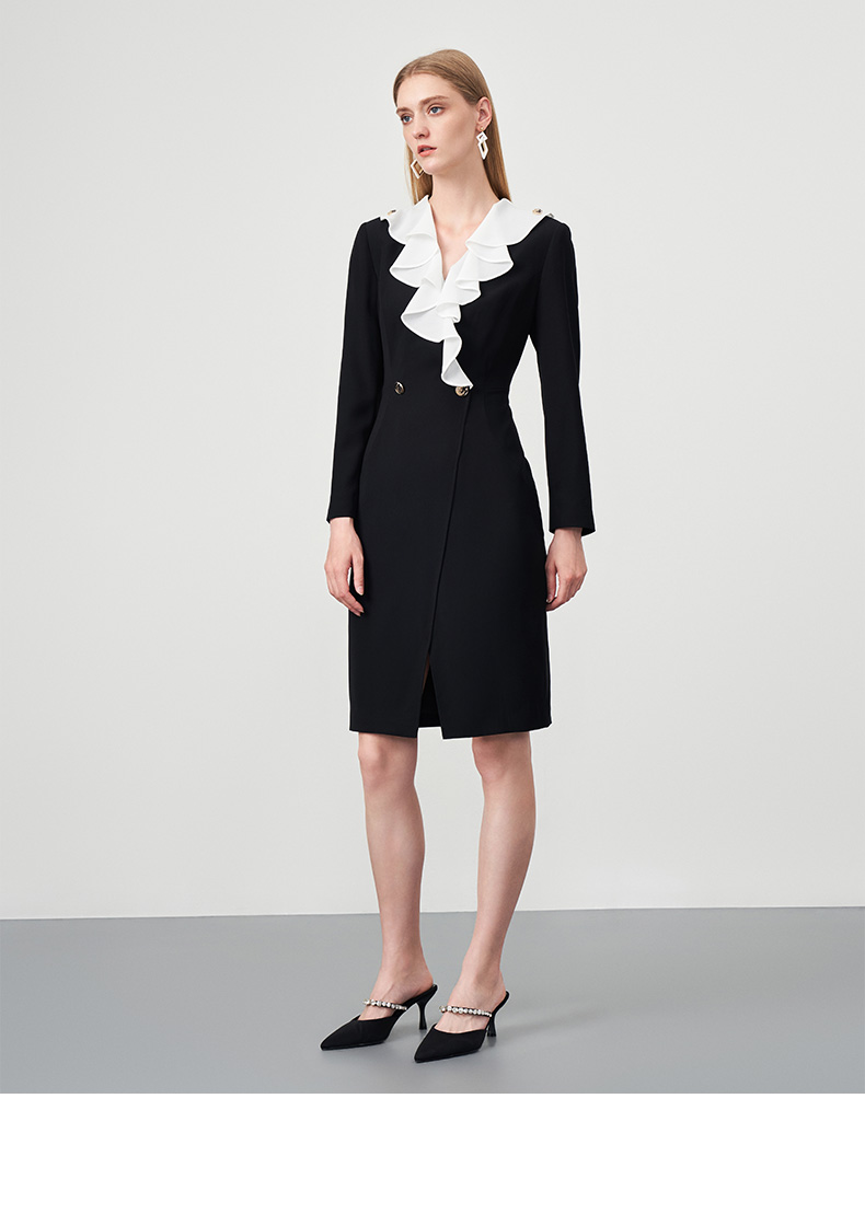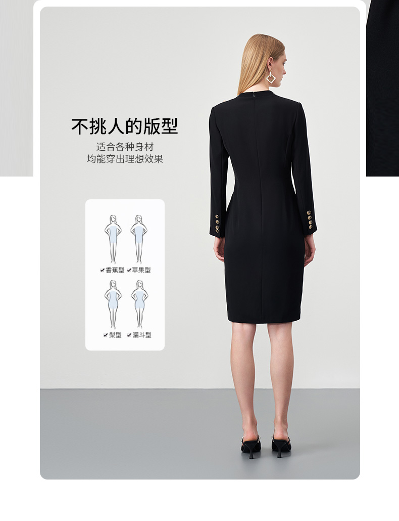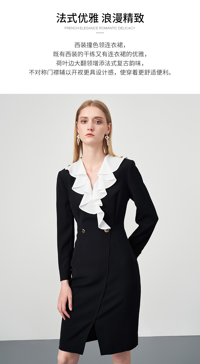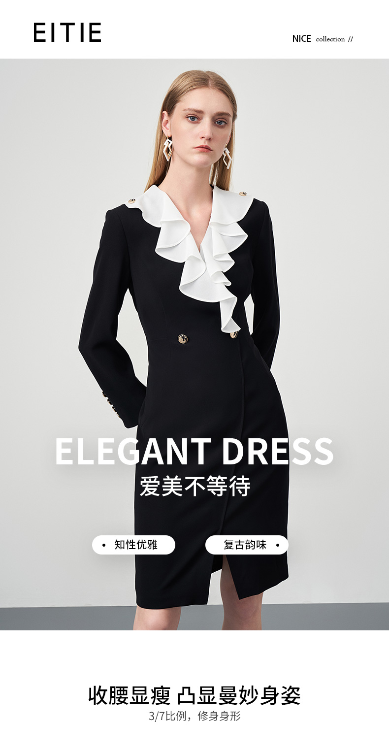 EITIE爱特爱秋季新款女装舒适V领连衣裙开叉裙摆6707404