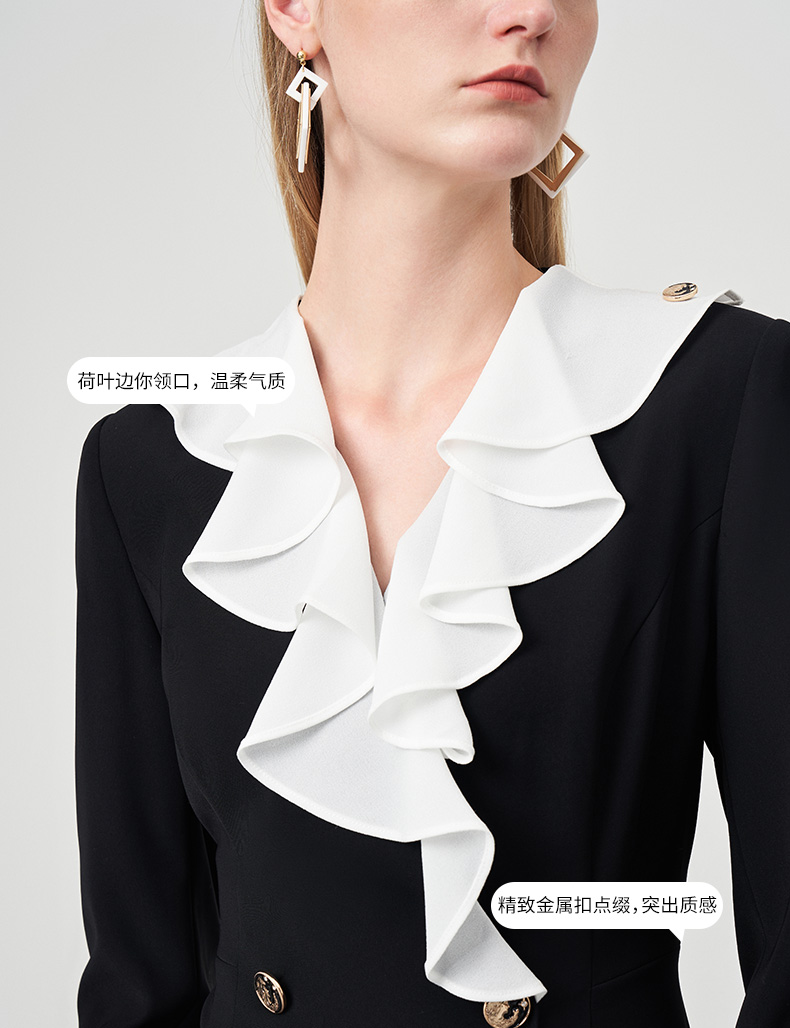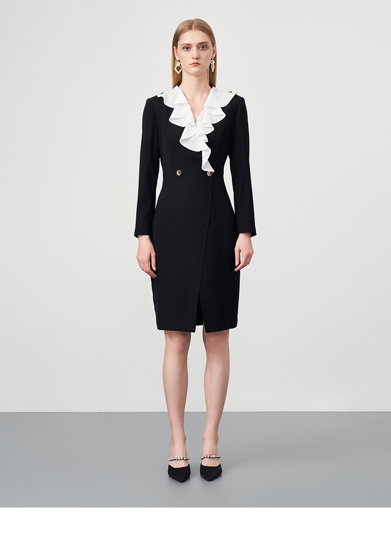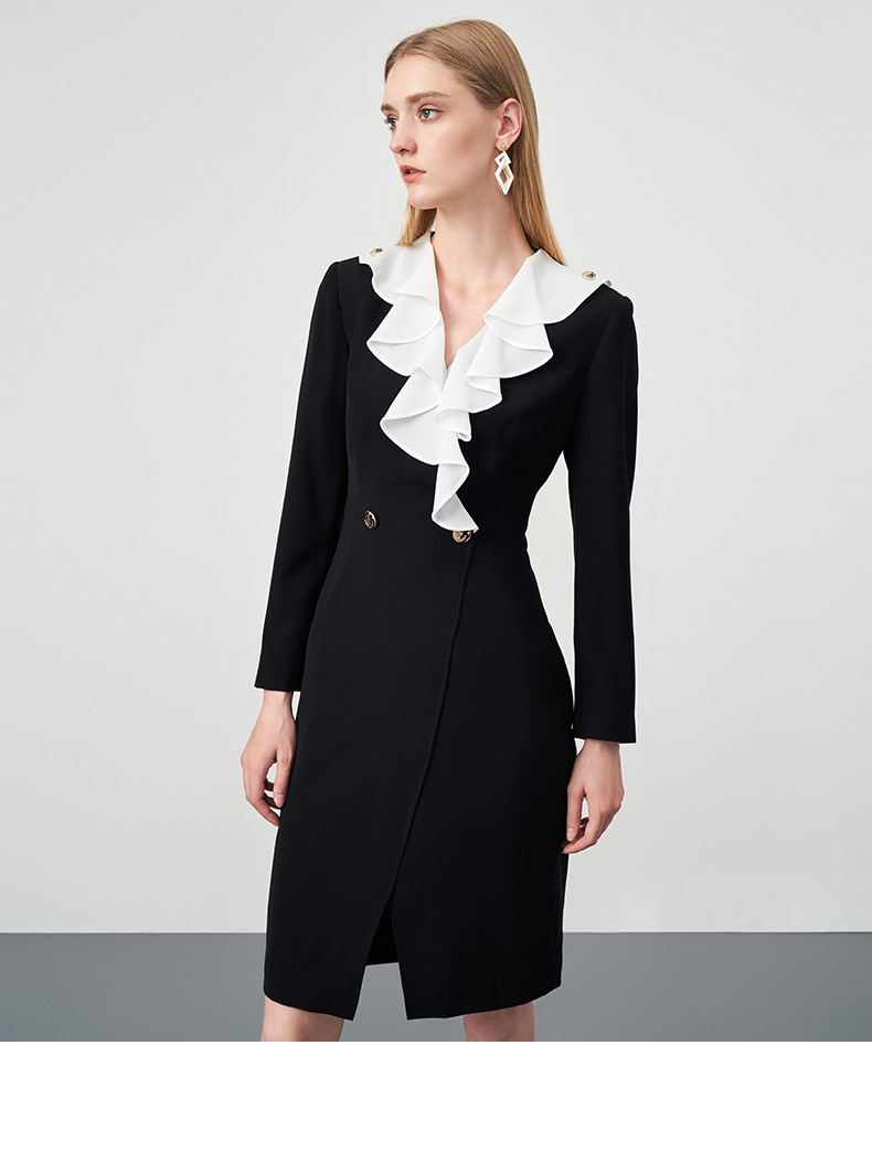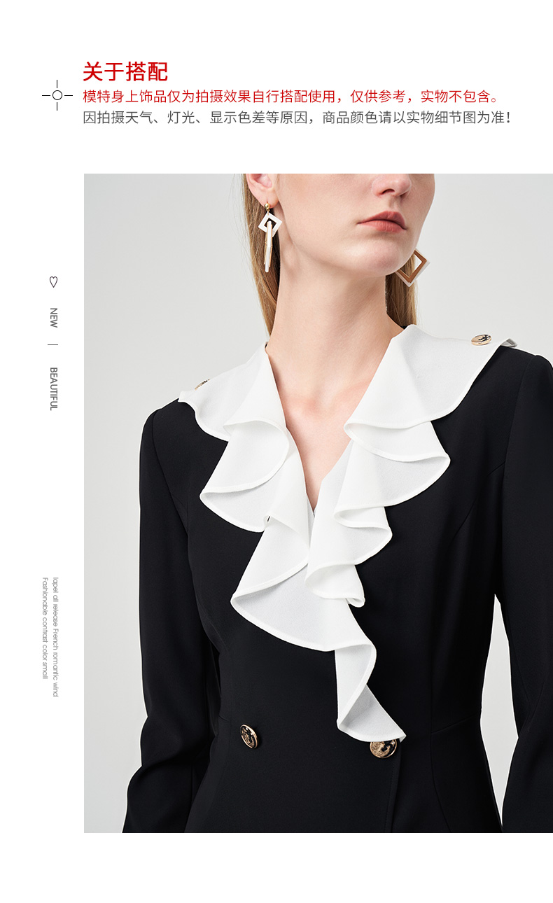 EITIE爱特爱秋季新款女装舒适V领连衣裙开叉裙摆6707404