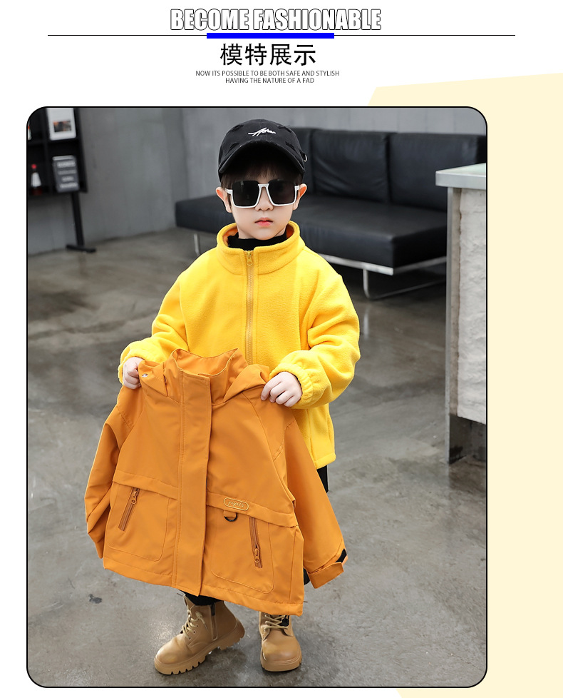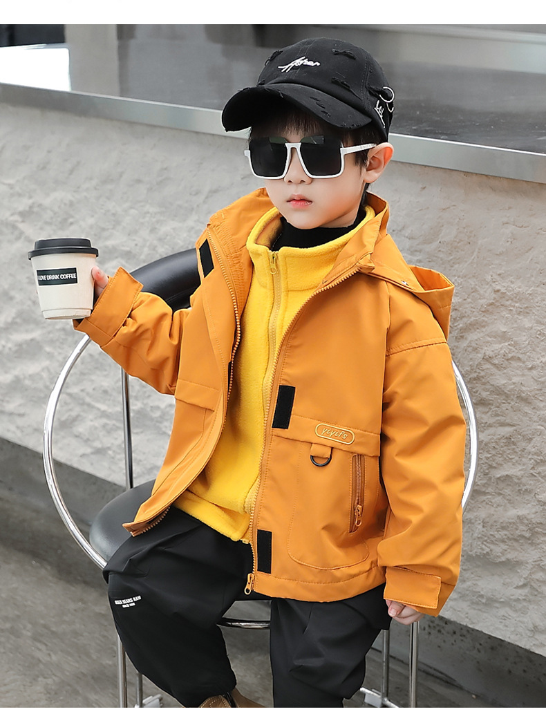 【轻便出行,时尚冲锋衣】同款儿童冲锋衣 男童秋冬款外套 新款三合一加绒上衣 男孩秋季外套-QQ