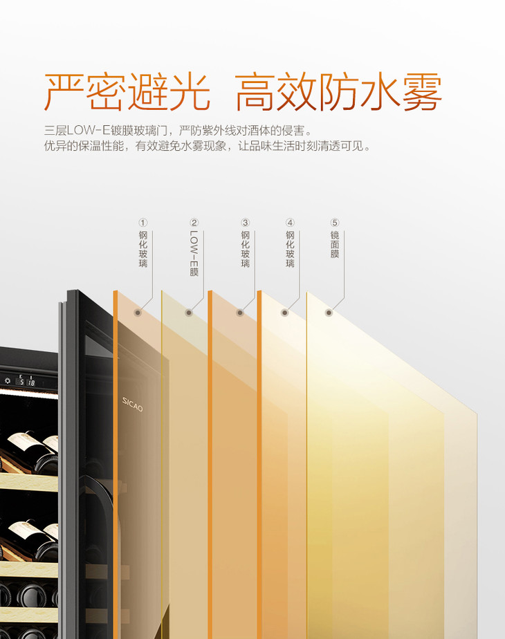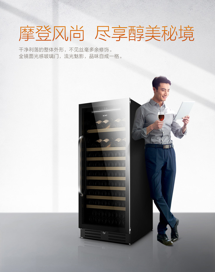 避震式压缩机风冷系统,零振动,低噪音智能储酒柜