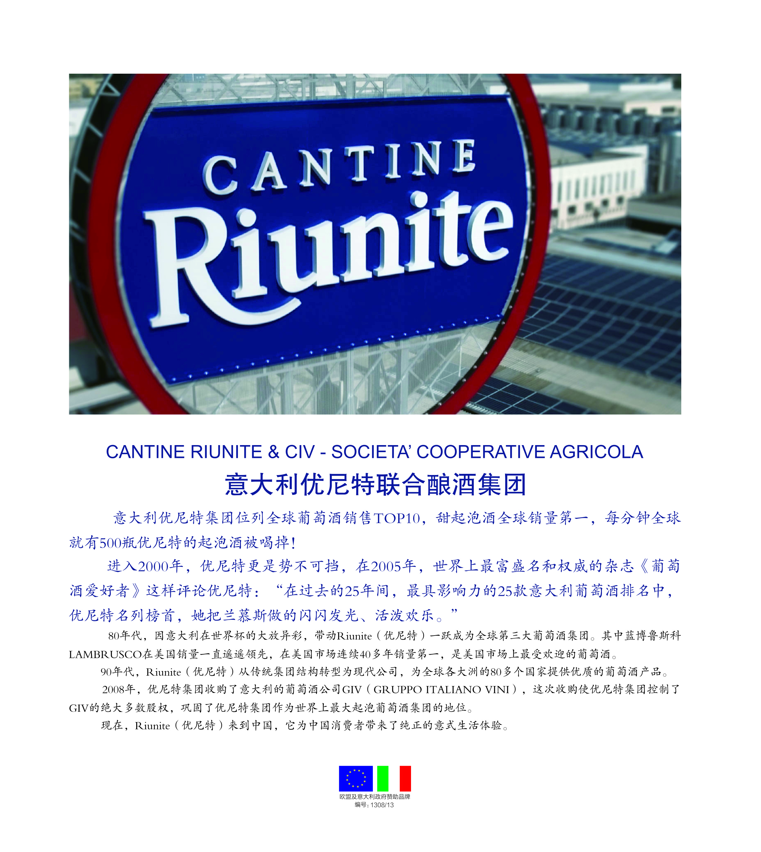 优尼特珍藏普洛赛克绝干高泡葡萄酒Riunite D.O.C.G Vino Prosecco