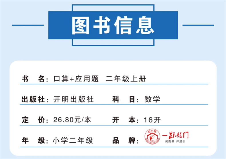 一跃龙门数学专项训练口算+应用题一年级上册二年级上册任选每天10分钟