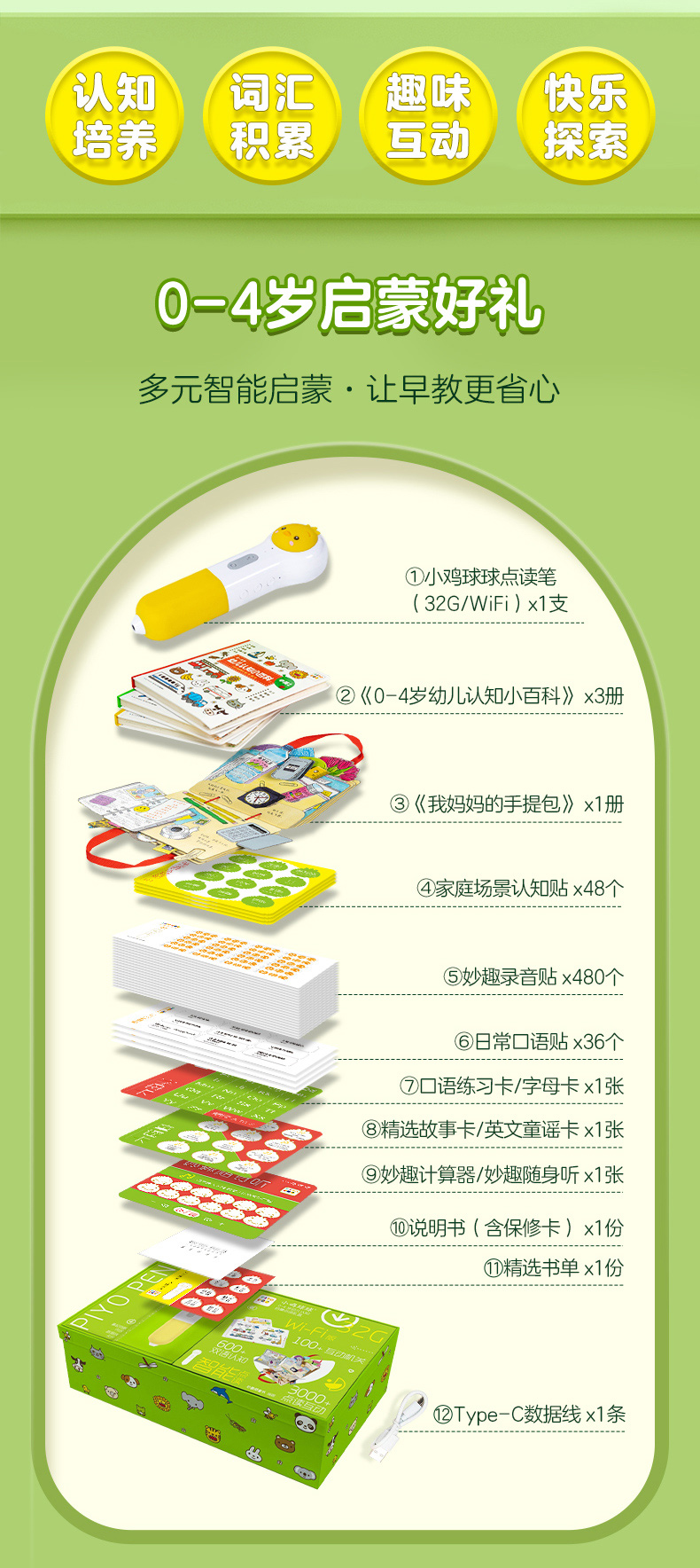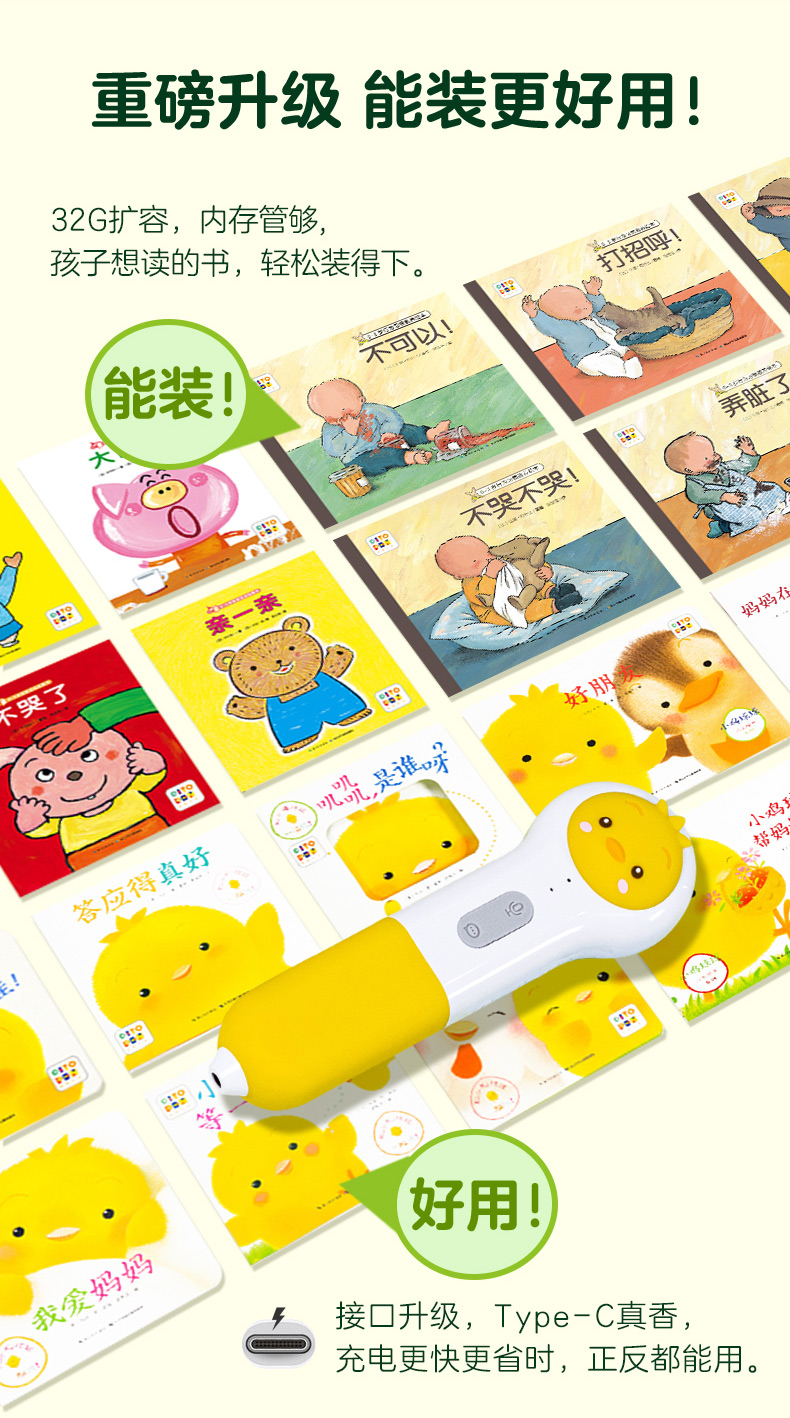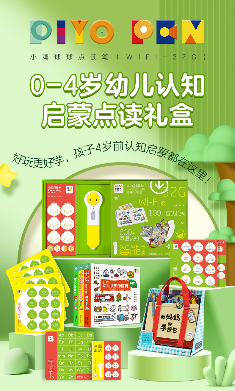 PIYO PEN小鸡球球点读笔(WIFI/32G/礼盒):0-4岁幼儿认知启蒙点读礼盒:全4册